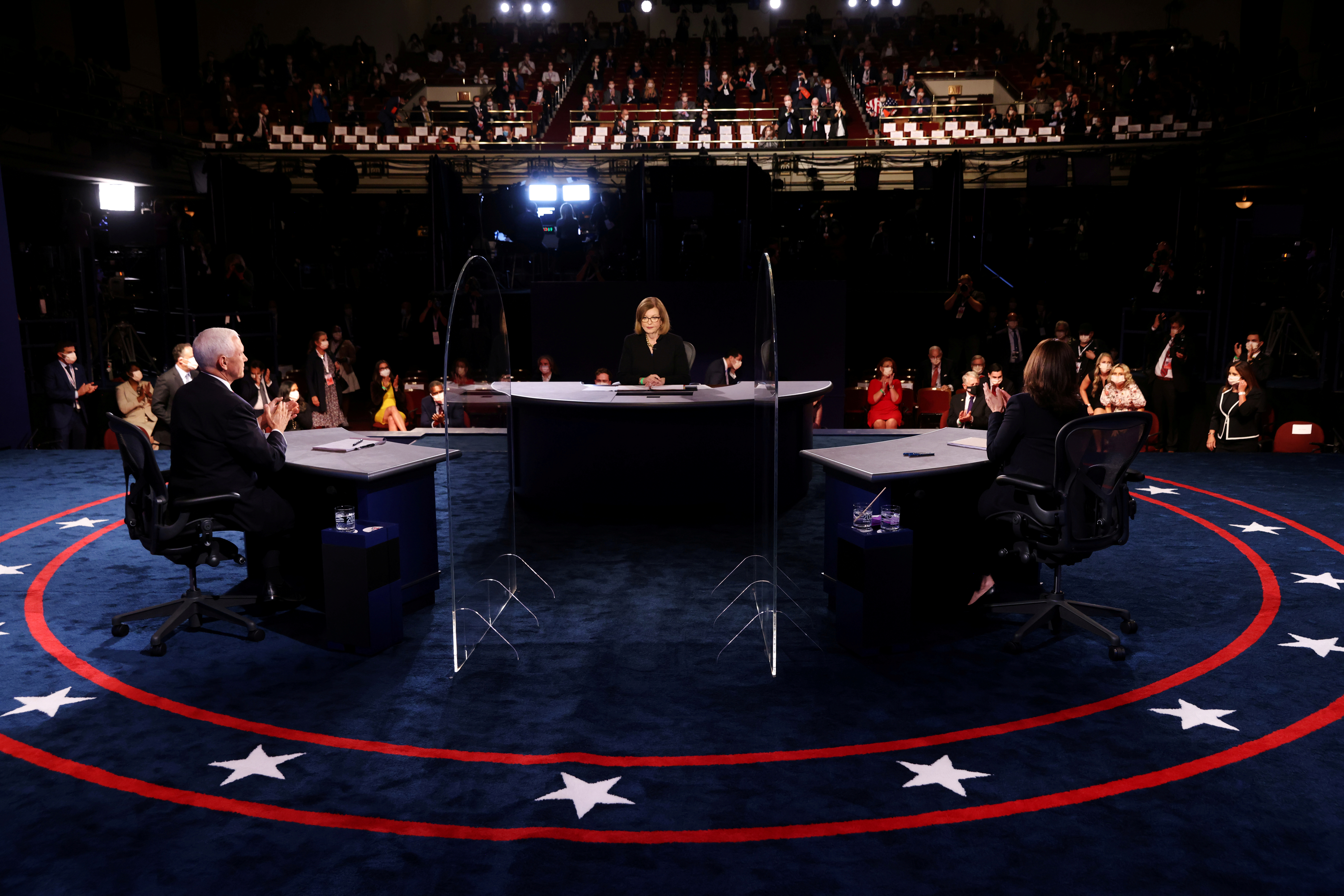 Harris presses her case Trump has bungled the presidency, forcing Pence to go on the defensive.