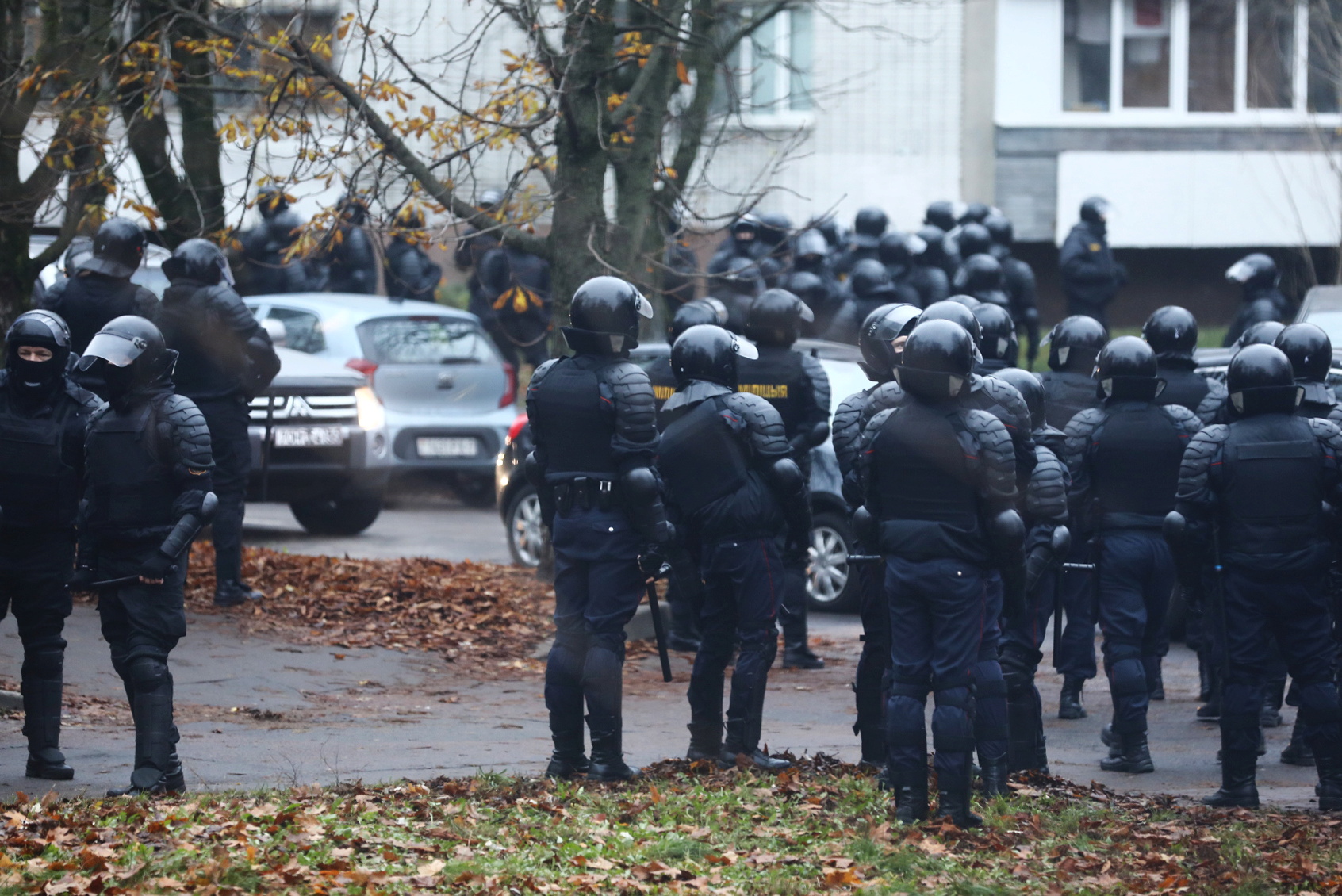 Security forces in riot gear and shields on Sunday flooded the square where Bondarenko was arrested, pulling down opposition flags, kicking over memorial lamps and dragging people from the crowds and frog-marching them to vans, a witness said.