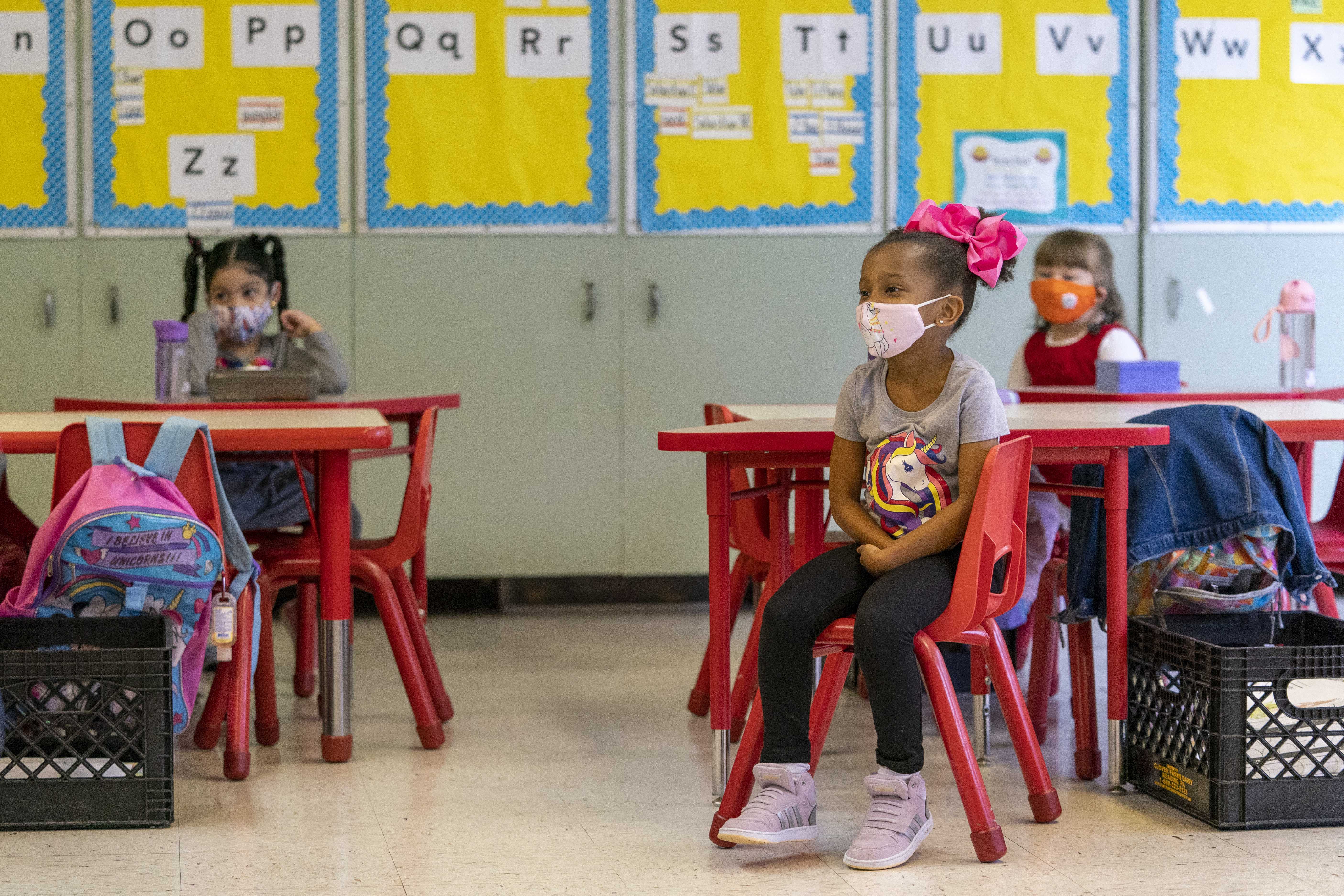 To keep students spread out, the city offered in-person learning only part-time, with youngsters logging on from home the rest of the time.