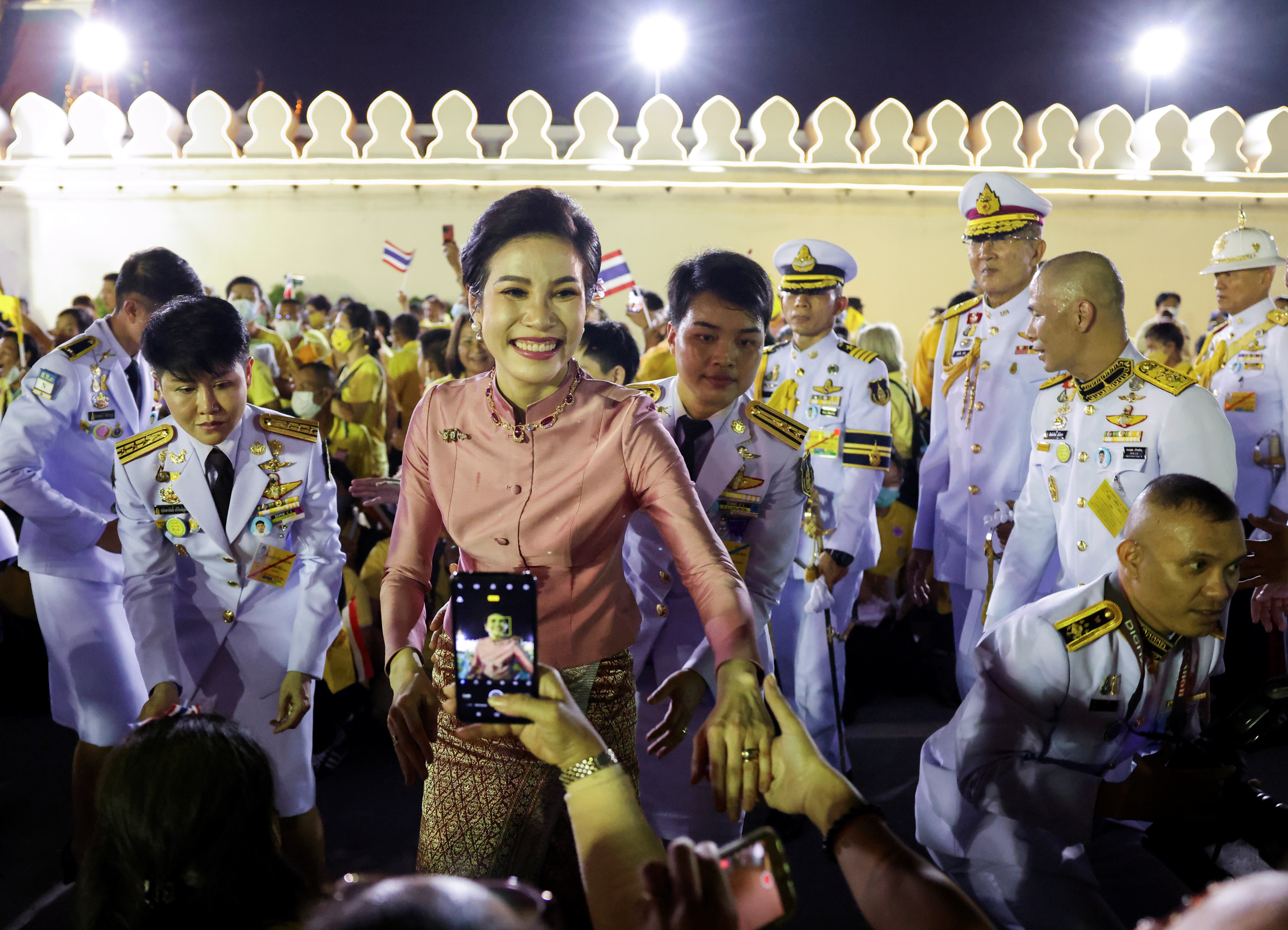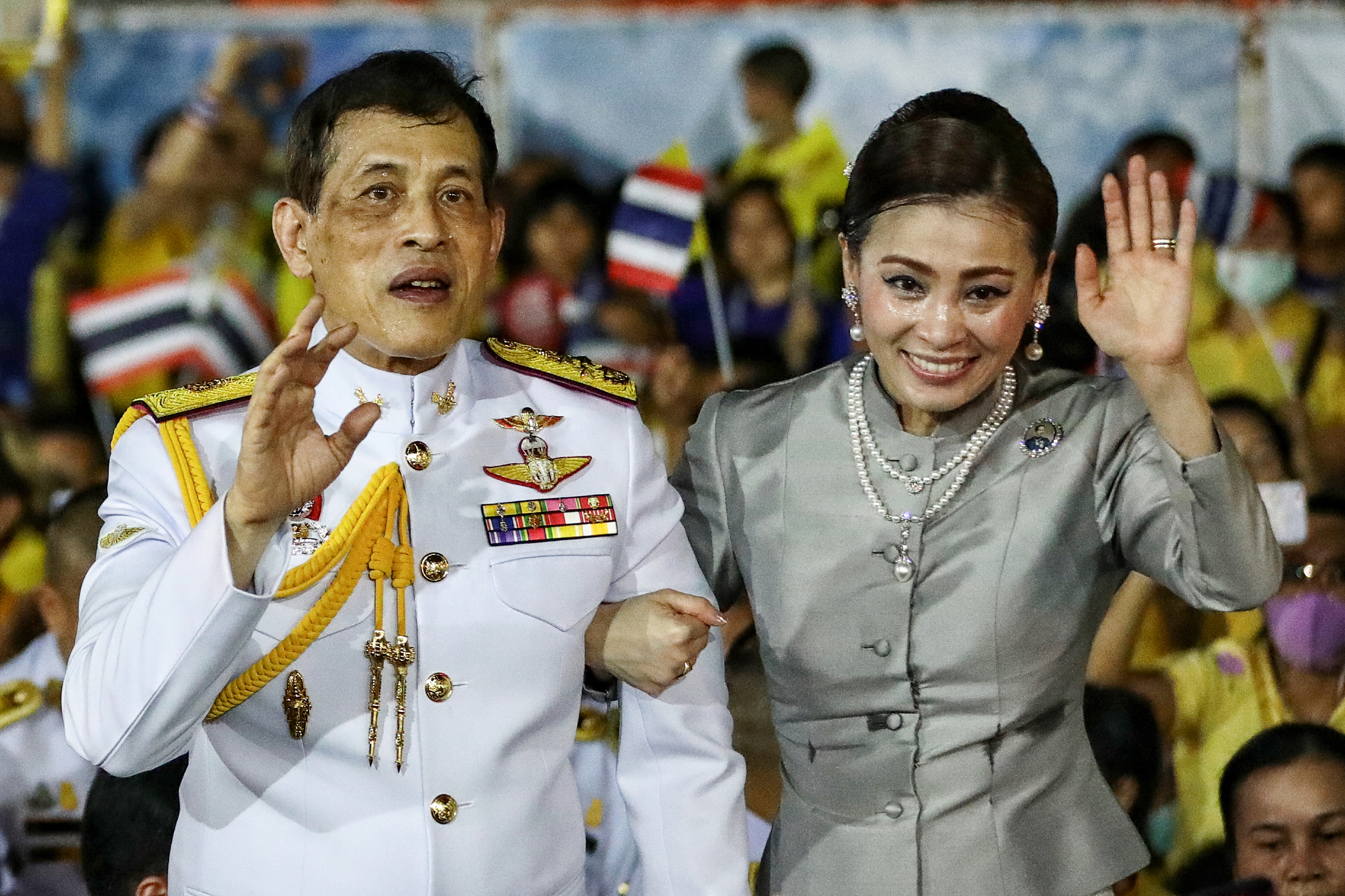 The 68-year-old ruler made the comments during a walkabout among thousands of people wearing yellow shirts – the colour of royalty – who had waited near the Grand Palace clutching portraits of King Vajiralongkorn and Queen Suthida.