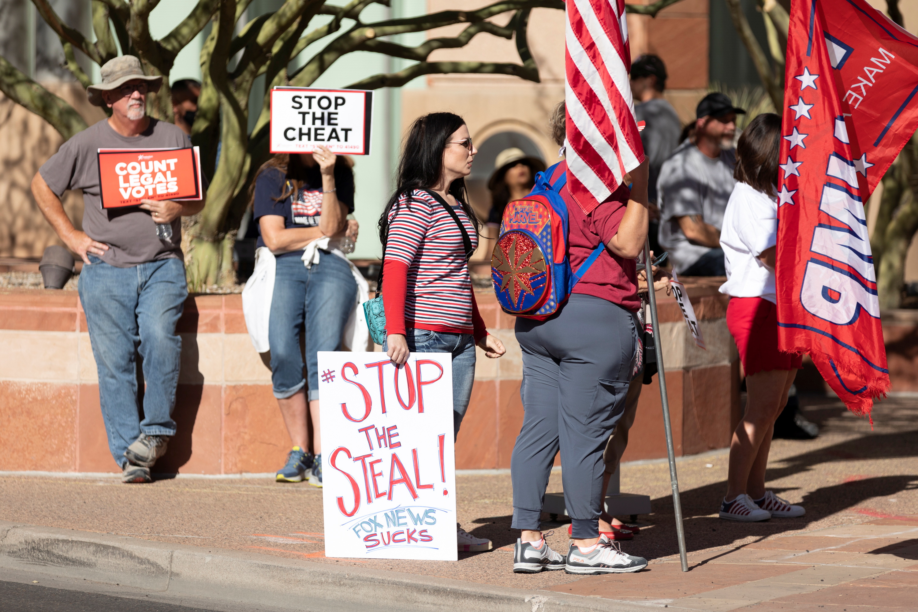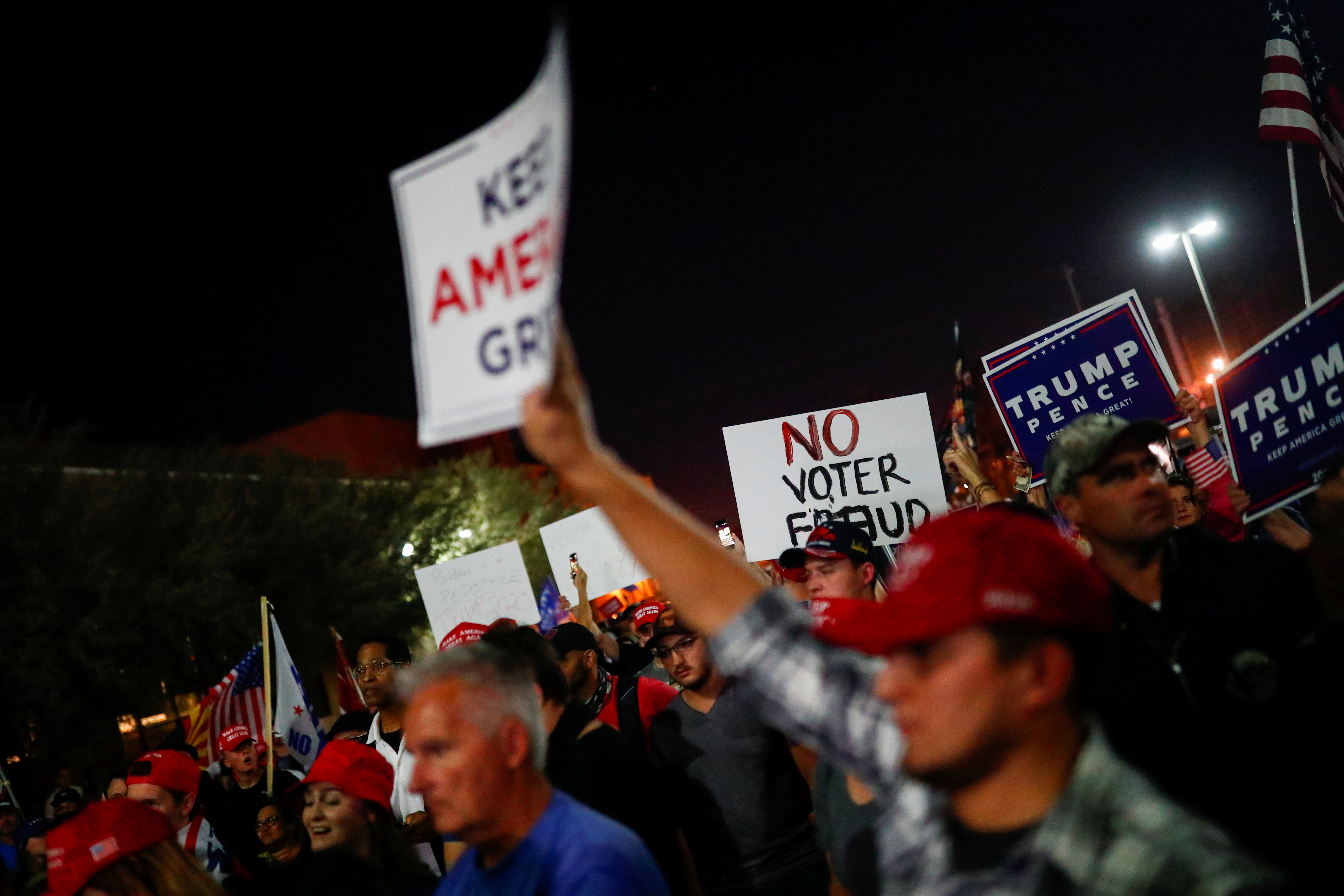A group of pro-Trump demonstrators, some of whom were armed and reportedly chanting “stop the steal”, forced a vote-counting location in Arizona to shut down overnight due to safety fears.