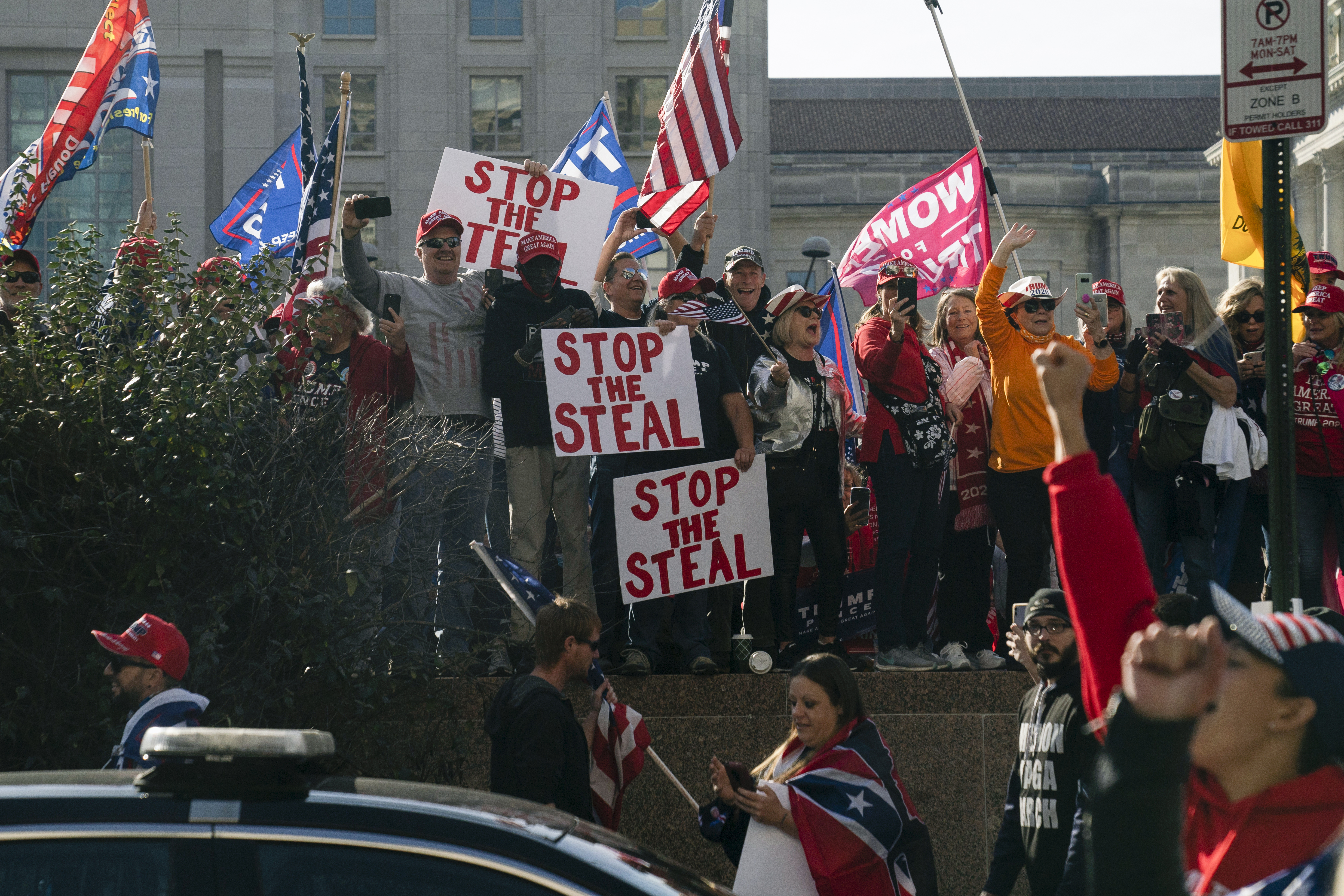 Thousands of Trump supporters rallied in Washington, DC, on Saturday, and the crowd cheered when Trump flew overhead in the Marine One helicopter on his way to a football game in New York state.