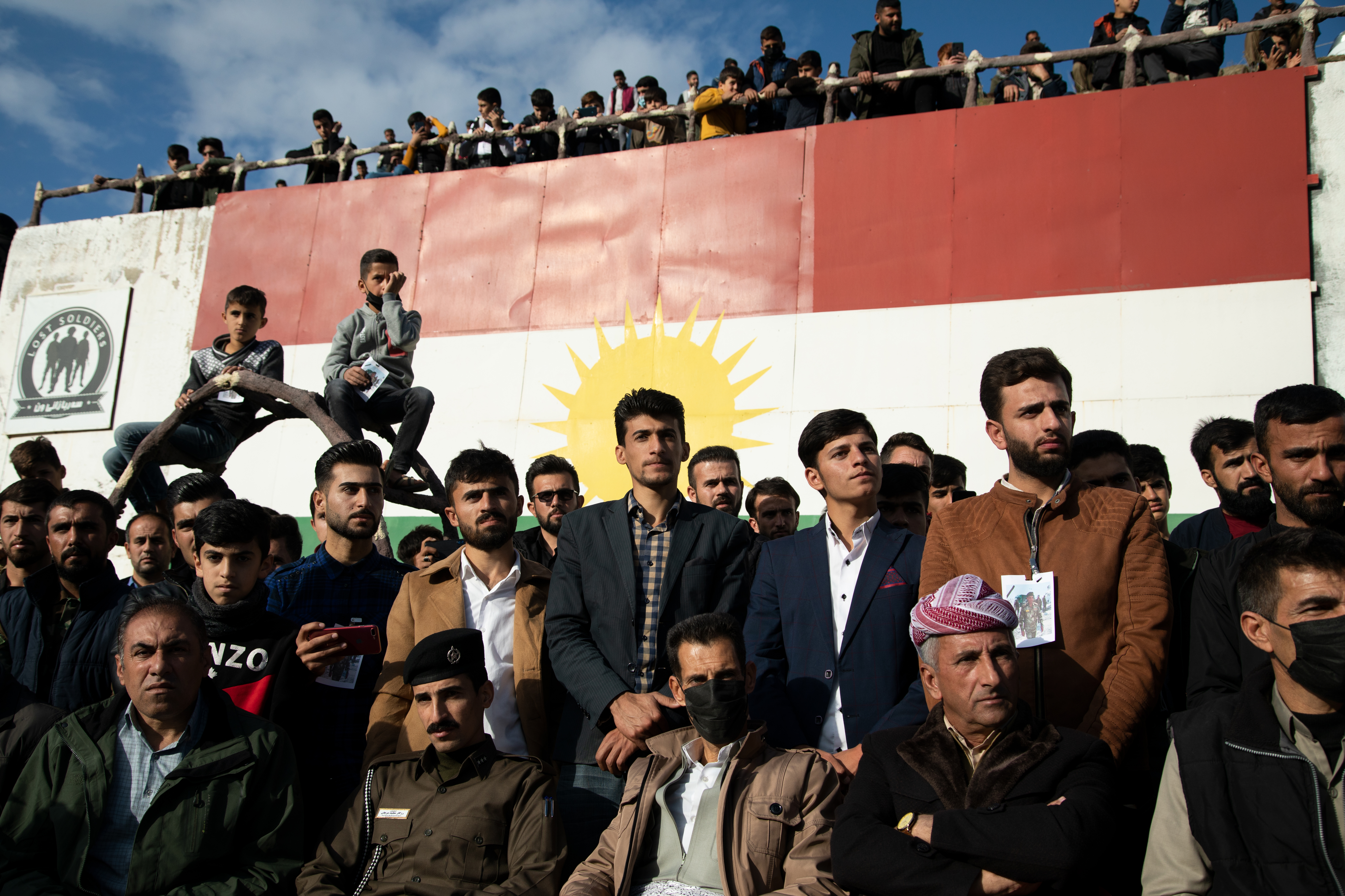 Below the Peshmerga outpost, at the feet of the hill, a large crowd gathered in the town of Sidekan for the unveiling of a memorial to Colonel Zuber Hali Bradosti of the Iraqi Border Police (IBP).