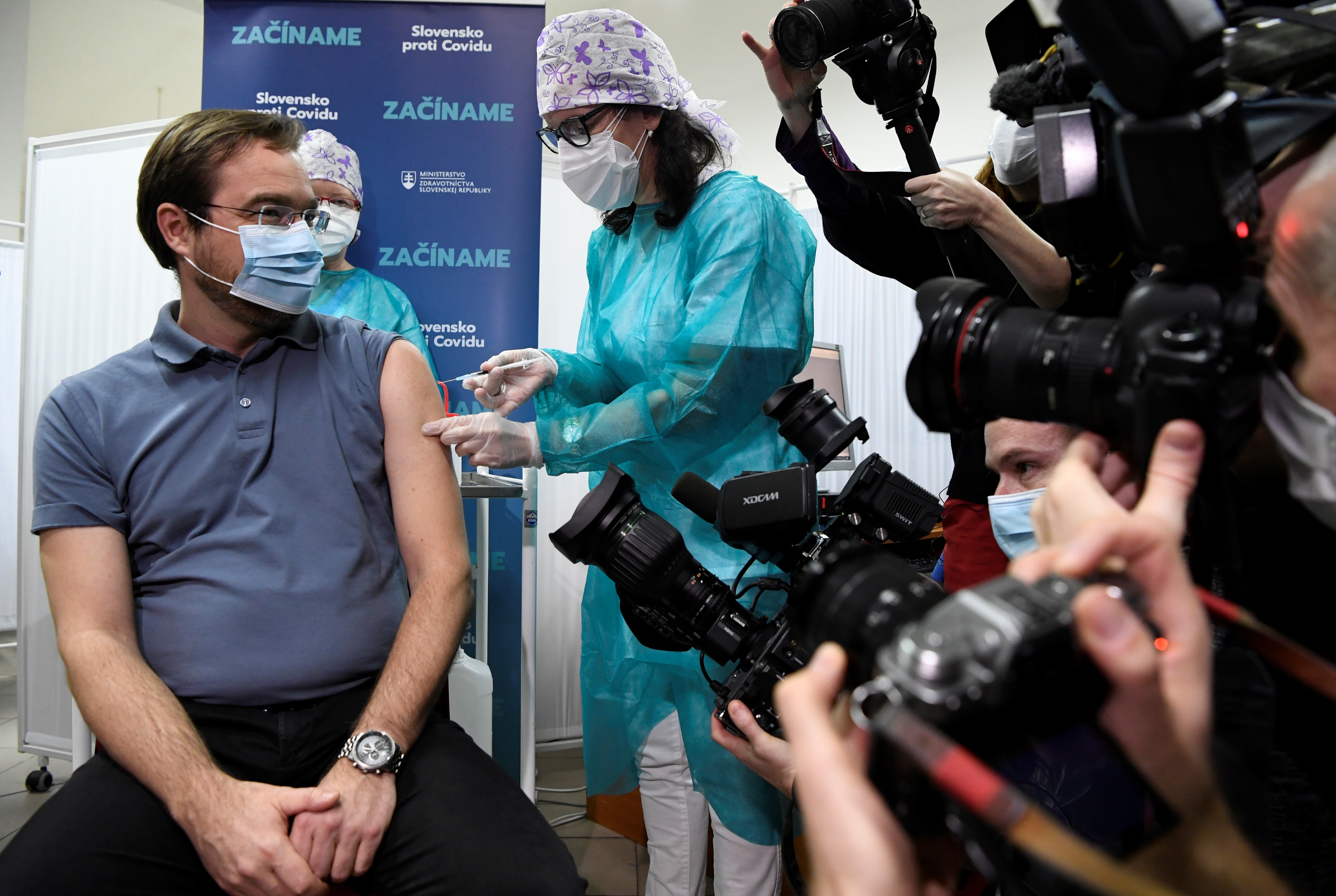 Vladimir Krcmery, a member of the government’s Pandemic Commission, was the first person in the country inoculated by the vaccine produced by Pfizer and BionTech.