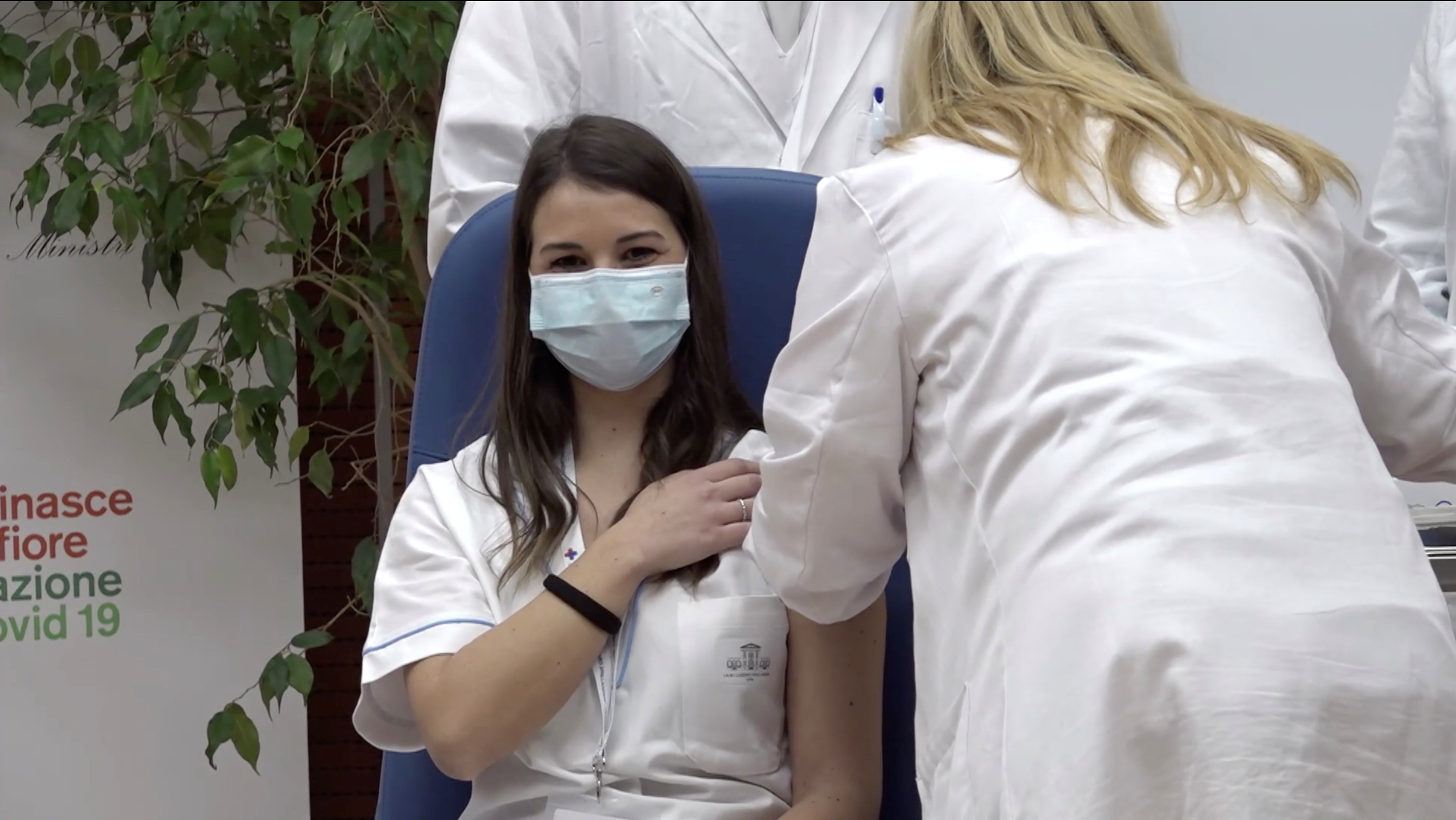 She was inoculated with four others at the Spallanzani hospital in Rome.
