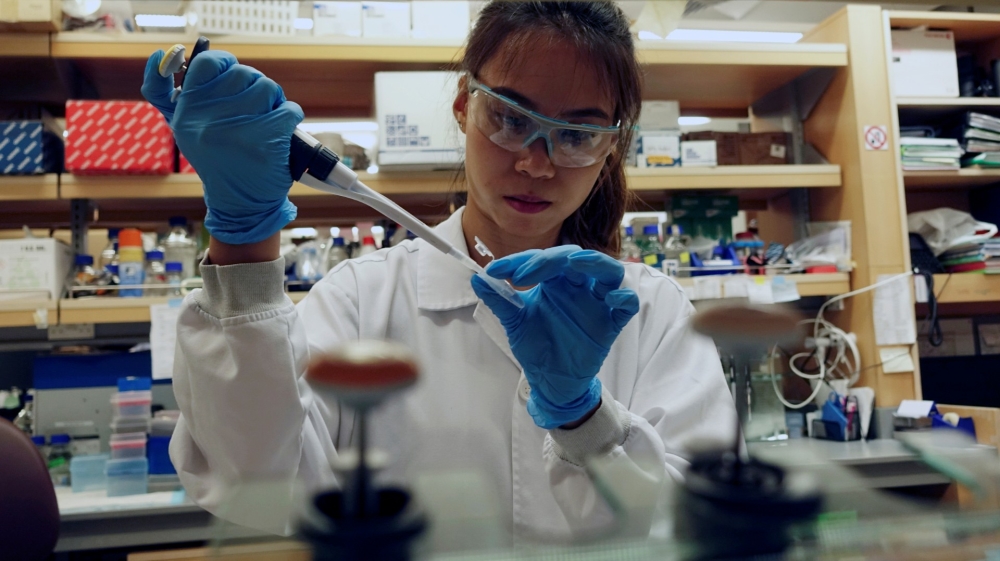 A researcher works in a lab at the Duke-NUS Medical School in Singapore which is developing a way to track genetic changes that speed up testing of vaccines against COVID-19 [File: Joseph Campbell/Reuters]