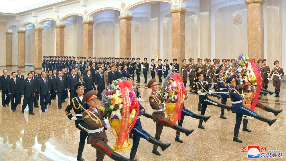 Official photos published on Thursday showed senior North Korean officials visiting the Kumsusan Palace of the Sun to pay tribute during the 108th birth anniversary of North Korea's founder Kim Il Sung [KCNA via Reuters]