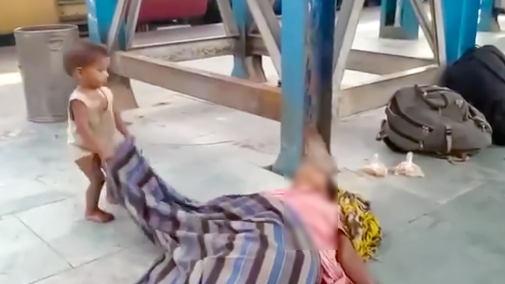 Local media aired footage of the two-year-old boy pulling at a cloth covering his dead mother at Muzaffarpur railway station in the northeastern state of Bihar [Screengrab/Social media]