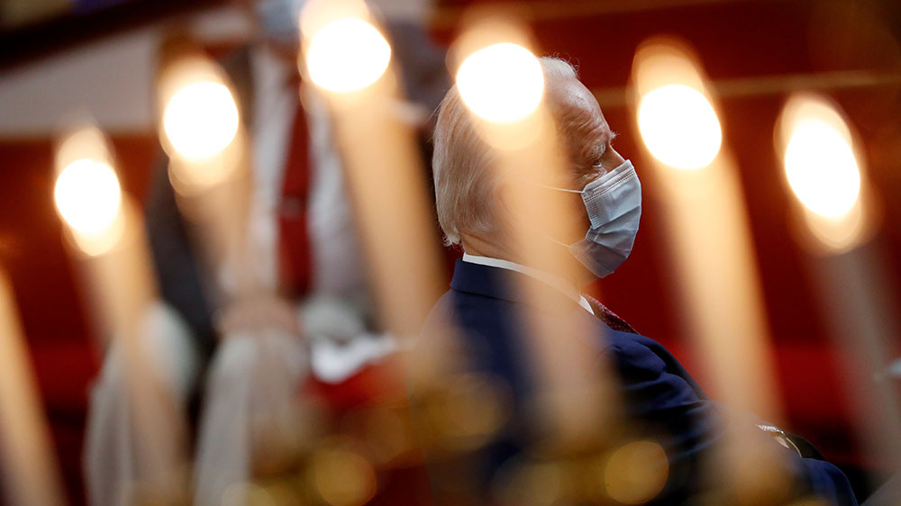 In the early moments of Monday’s gathering at the Bethel AME church in Biden’s hometown of Wilmington, Delaware, the former vice president listened quietly and took notes in a spiral notebook. All of the attendees, including Biden, wore face masks.