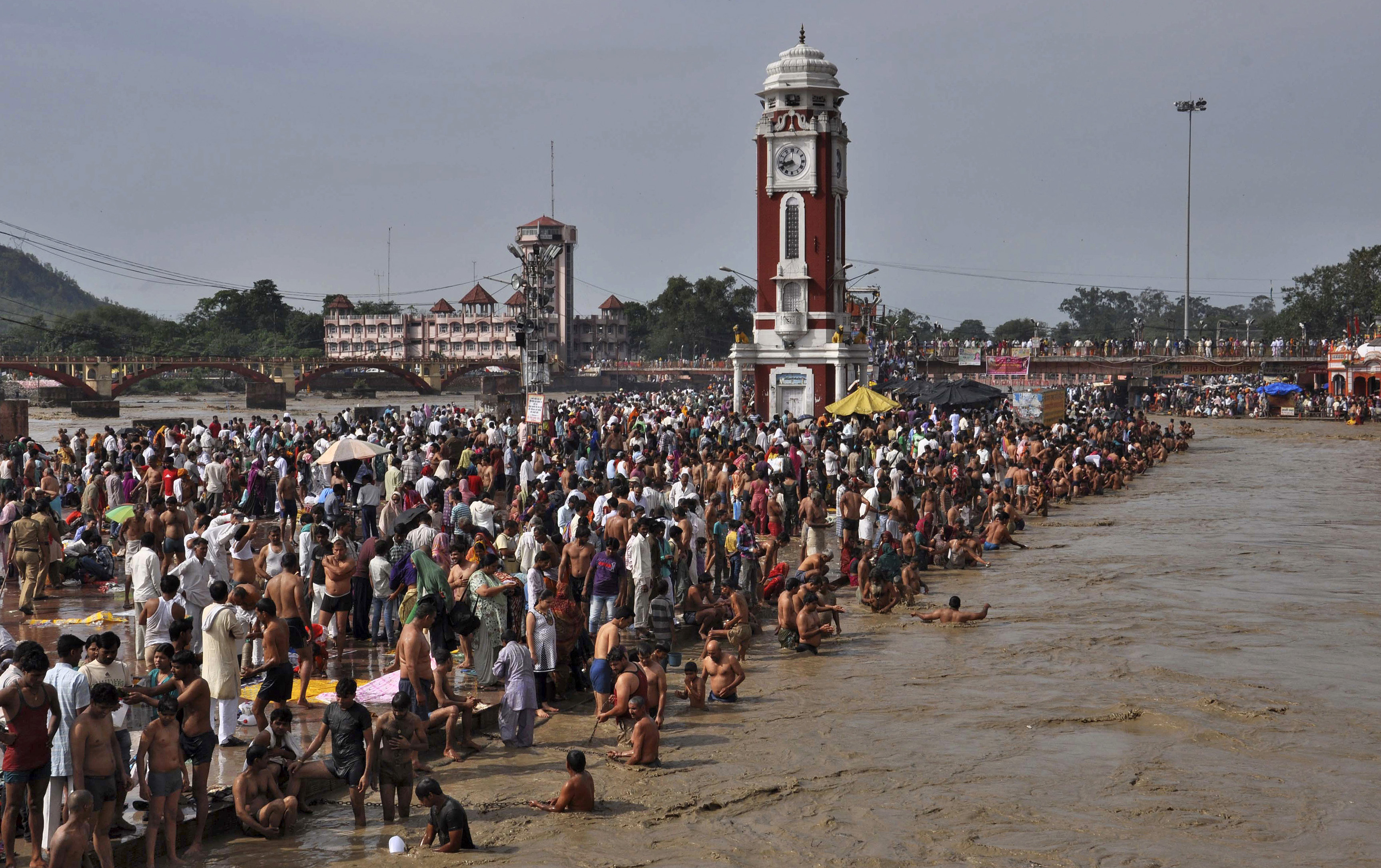 Taking a dip in the Ganges is considered a sacred rite by Hindus, who come from across India and beyond its borders to participate.