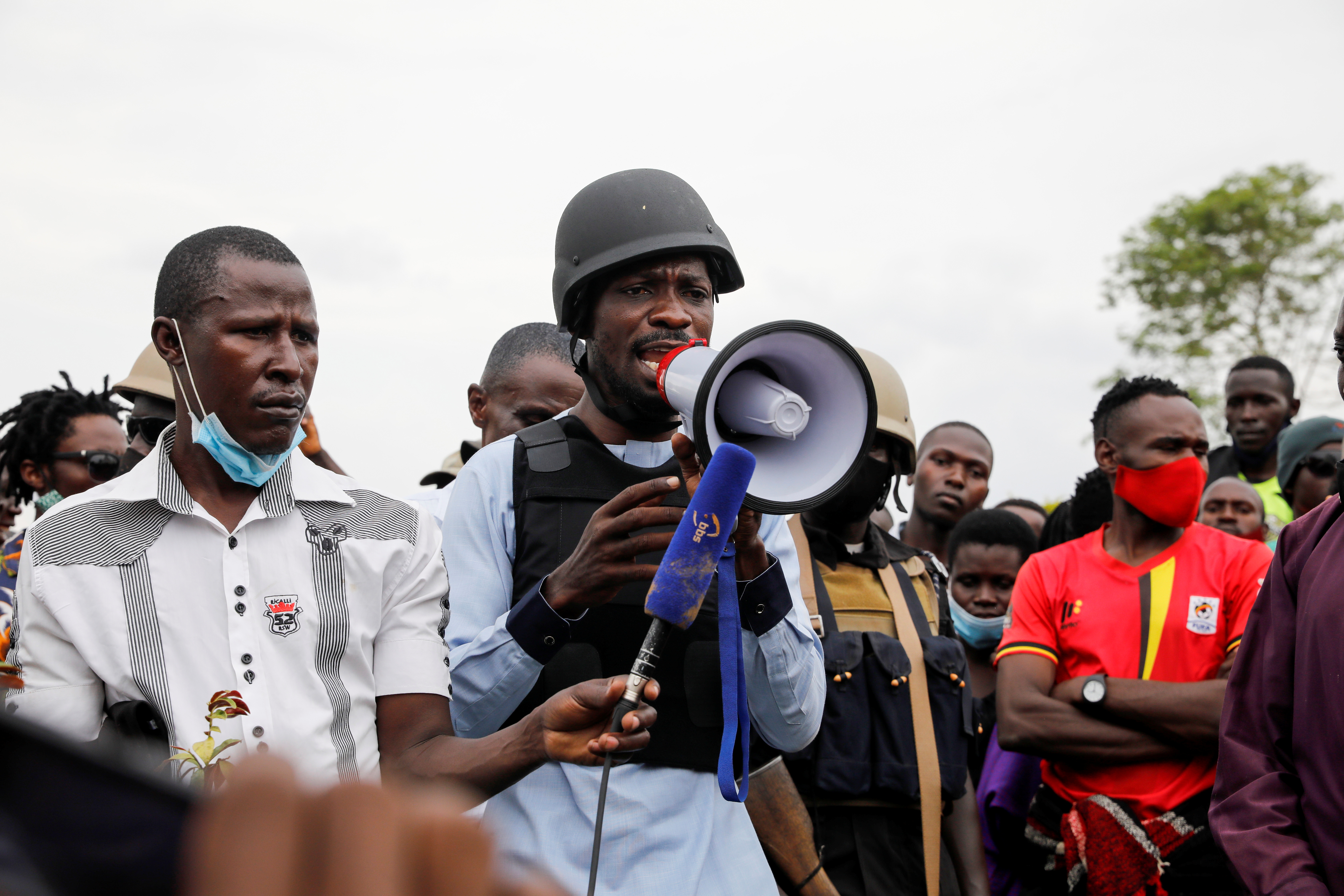 list of 3 items- list 1 of 3Bobi Wine to legally contest Uganda vote, urges non-violence