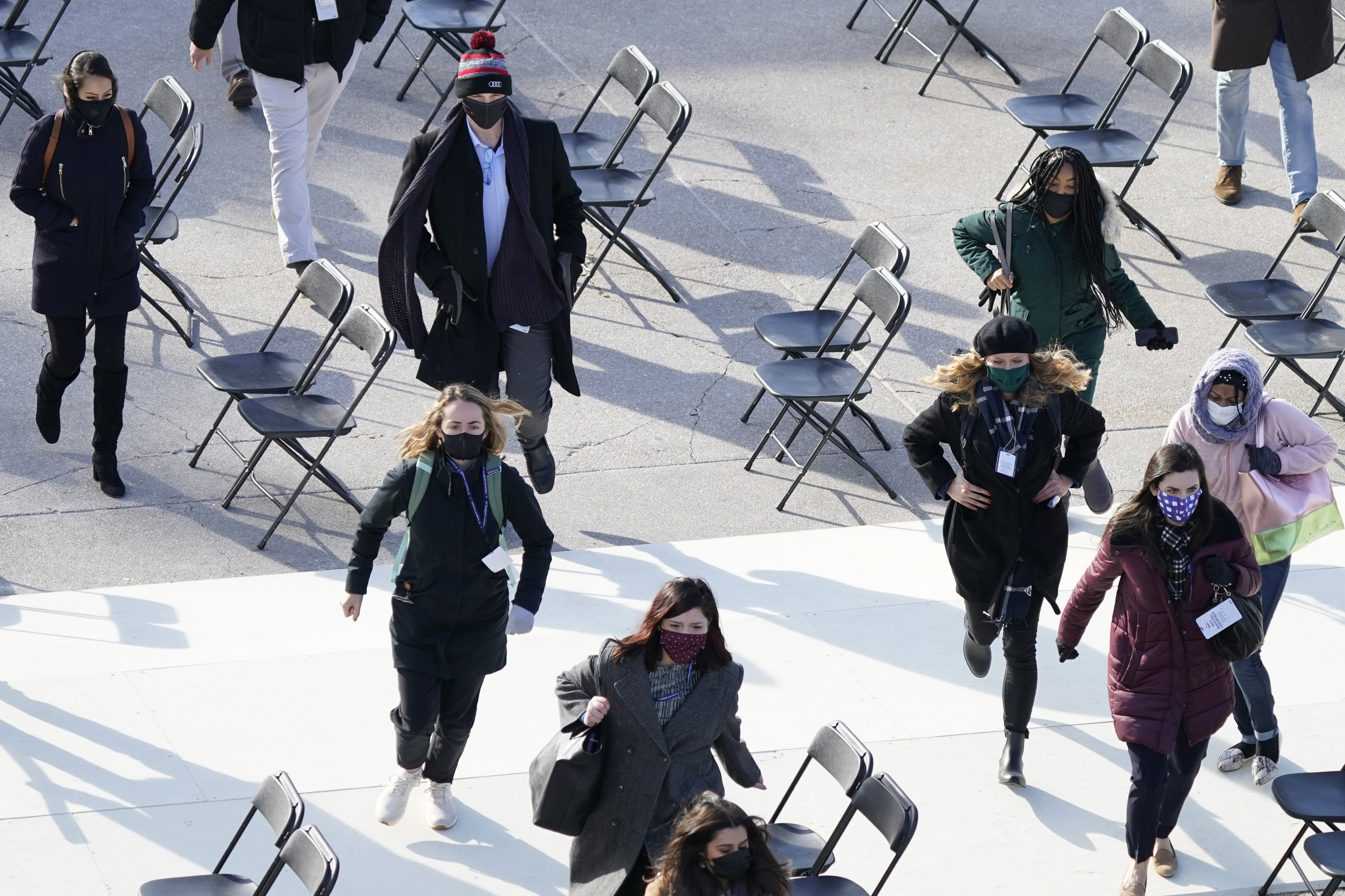 Participants were ushered from the West Front of the Capitol. Those who had gathered for a walk-through, including a military band, were directed to head indoors and moved in the direction of a secure location inside the Capitol complex.