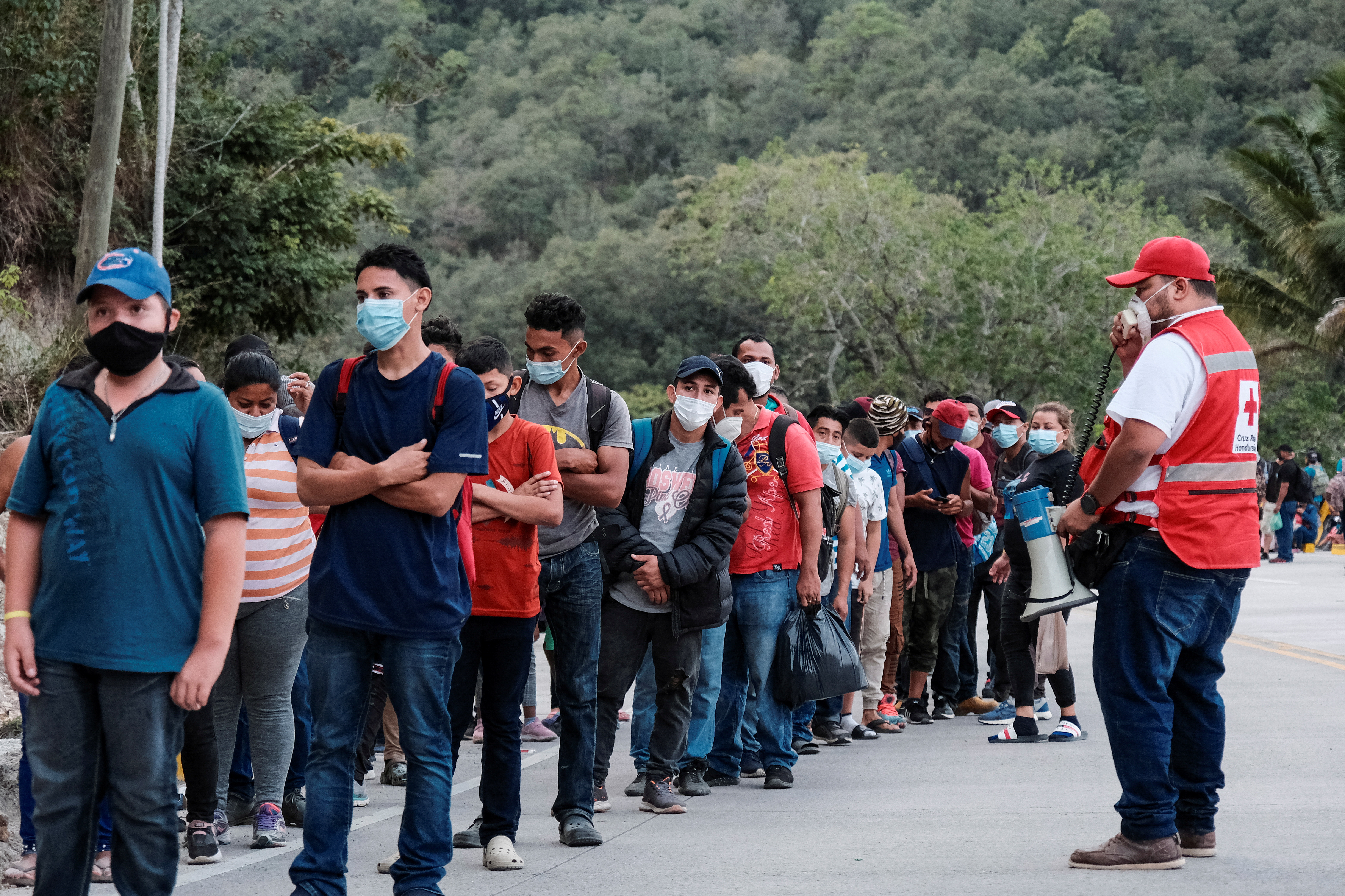 A Reuters witness said about 2,000 migrants were still camped out on the highway near the village of Vado Hondo, about 55 kilometres (34 miles) from the borders of Honduras and El Salvador, after clashing with Guatemalan security forces on Sunday.