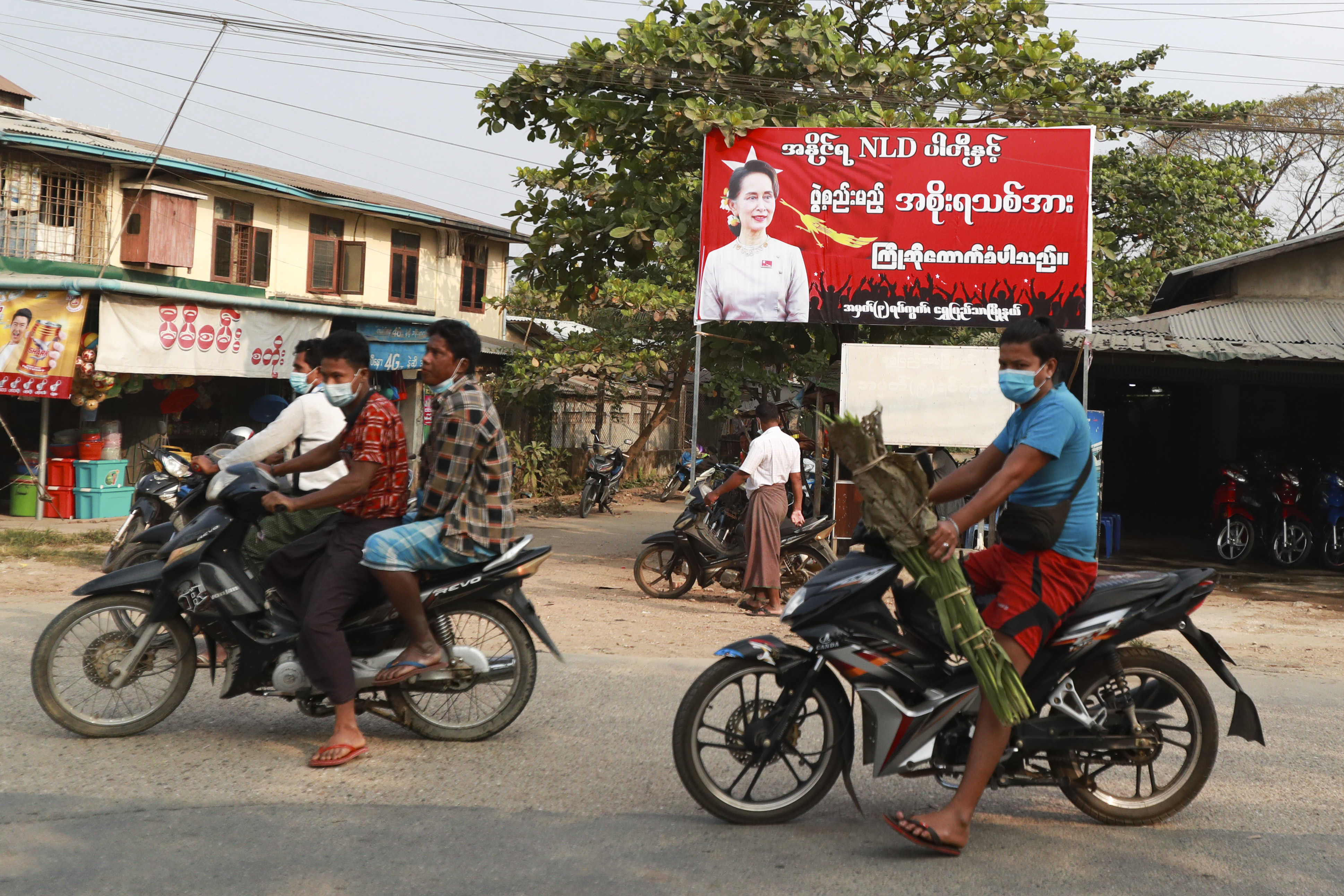 Amid the rising political uncertainty, people in Yangon, the country’s biggest city and commercial capital, had begun flying the NLD’s red flag from their balconies in solidarity with the governing party, while banners had also been erected in the streets declaring support for the elected government.