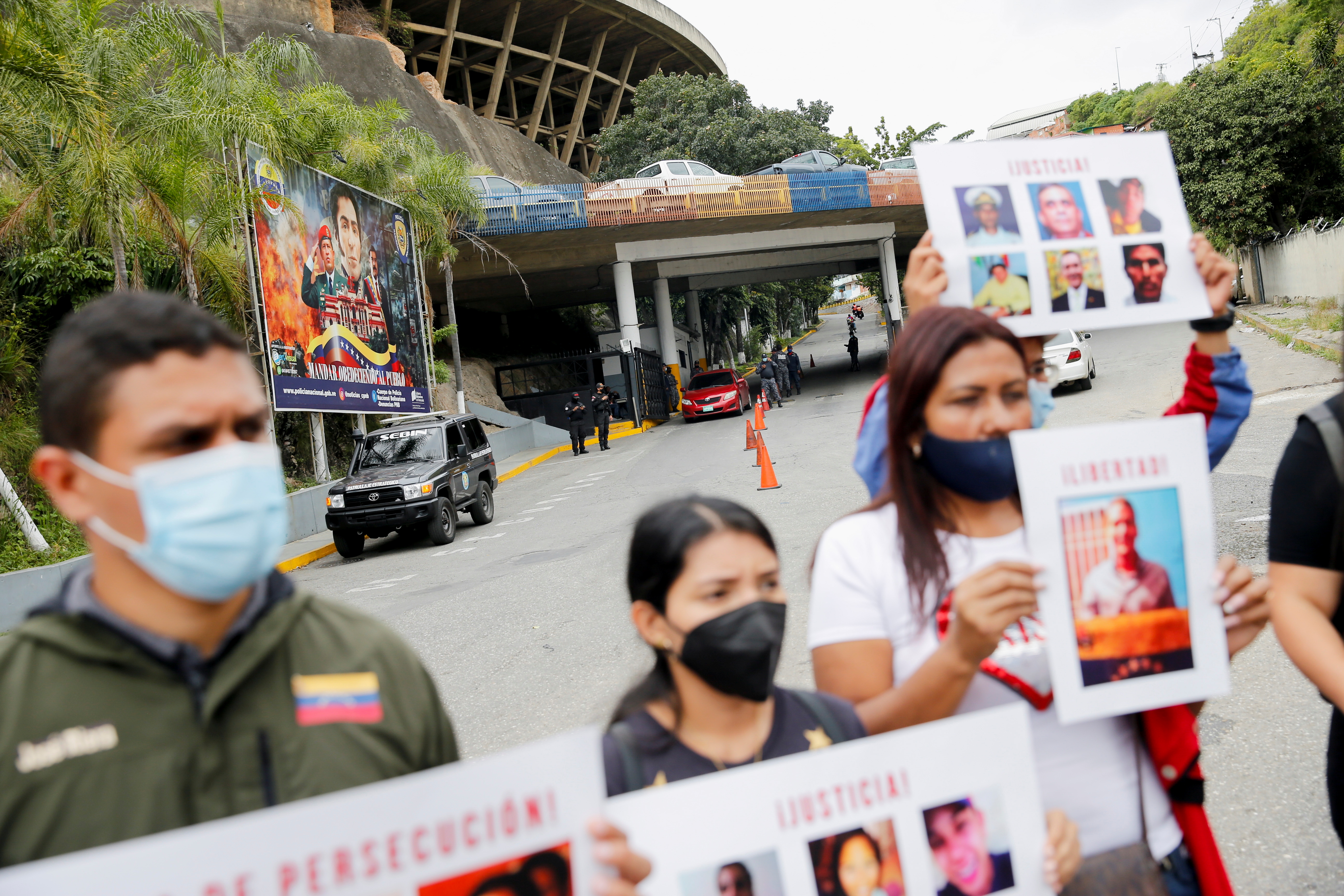 On Wednesday, there was also a small protest outside the intelligence services headquarters in the capital, Caracas, where opposition figures are being held.