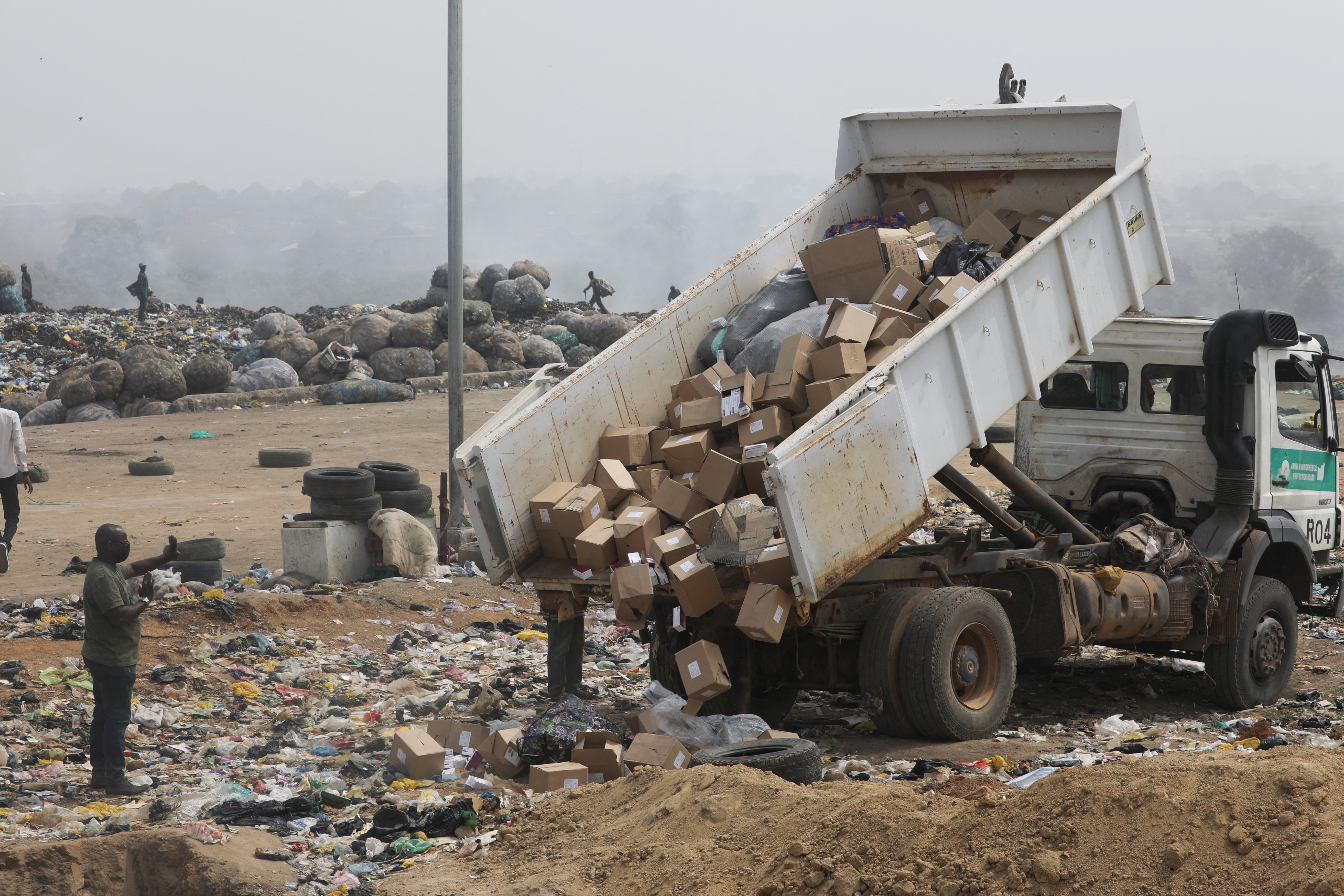 At a dumpsite in Abuja, a bulldozer crushed AstraZeneca shots that were packed in cardboard boxes and plastic as reporters and health officials watched.
