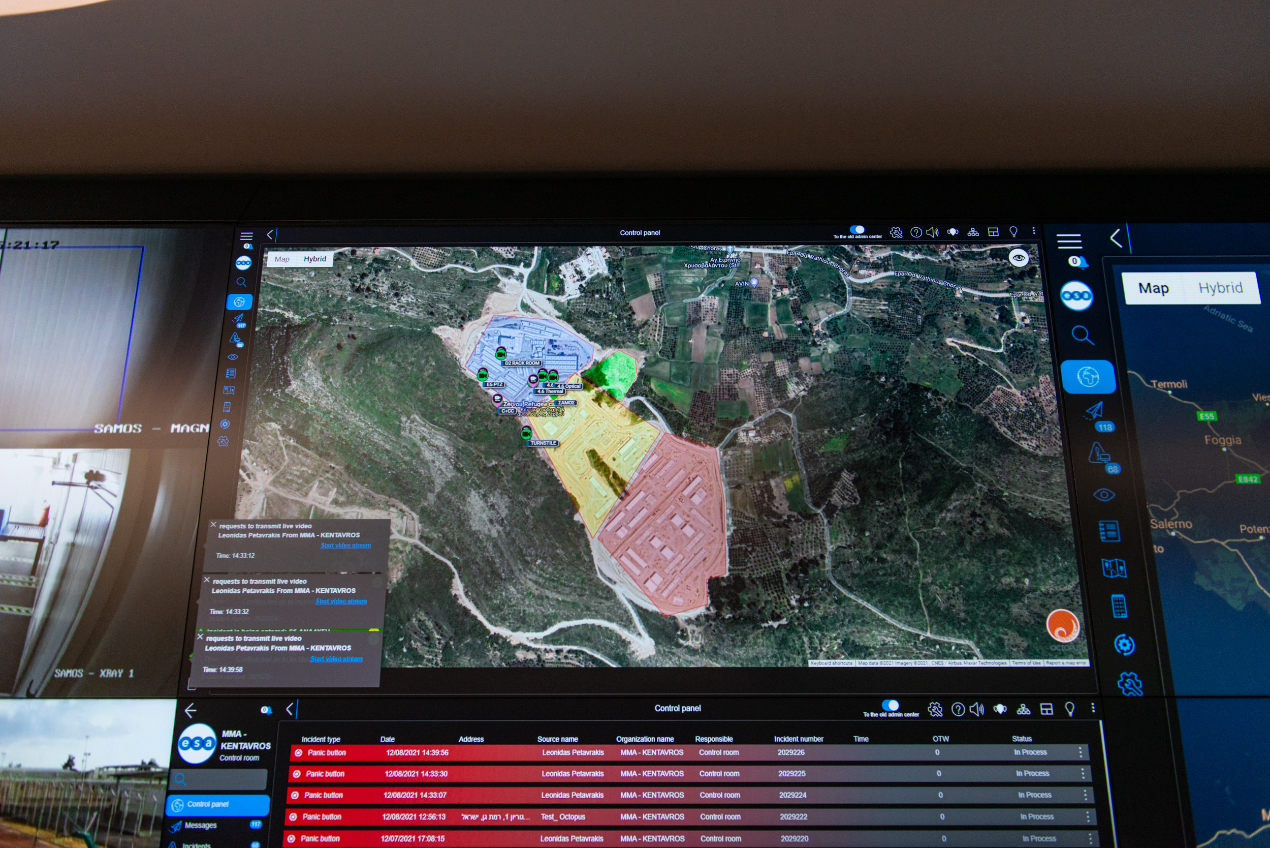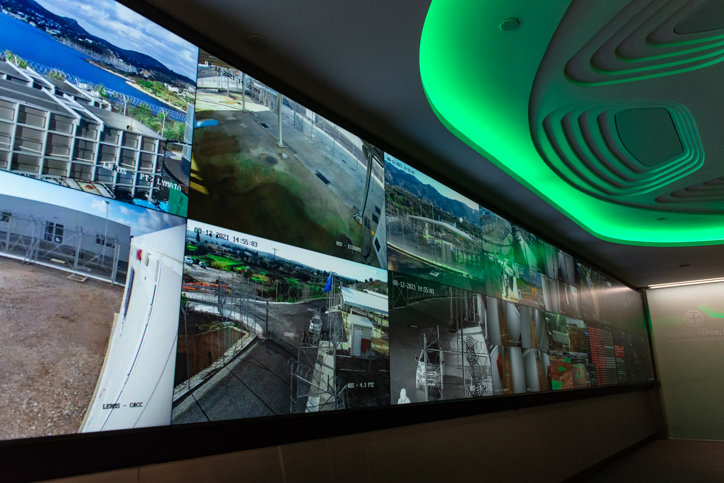 Overhead, lights suddenly flash red. A potential threat has been detected in one of the camps. This “threat” has been flagged by Centaur, a high-tech security system the Greek Migration Ministry is piloting and rolling out at all of the nearly 40 refugee camps in the country.