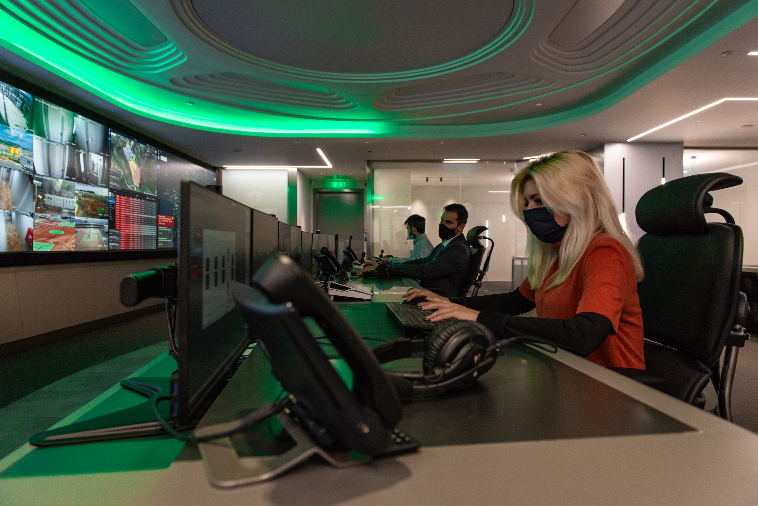 From the control room, operators deploy camera-equipped drones and instruct officers stationed at the camp to rush to the location of the reported threat.