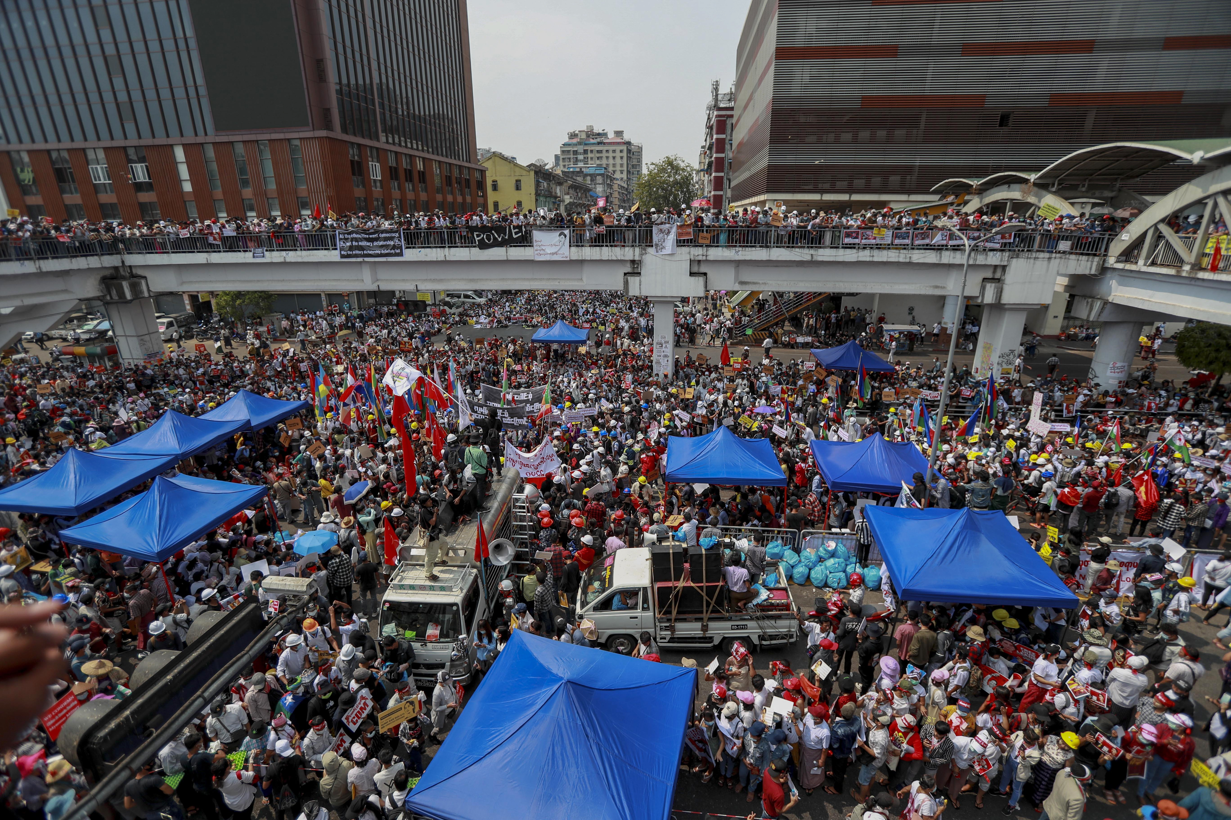 In the country’s largest city of Yangon, protesters also started pouring into the streets, with student groups and workers from different ethnic minorities also expected to join the crowds.
