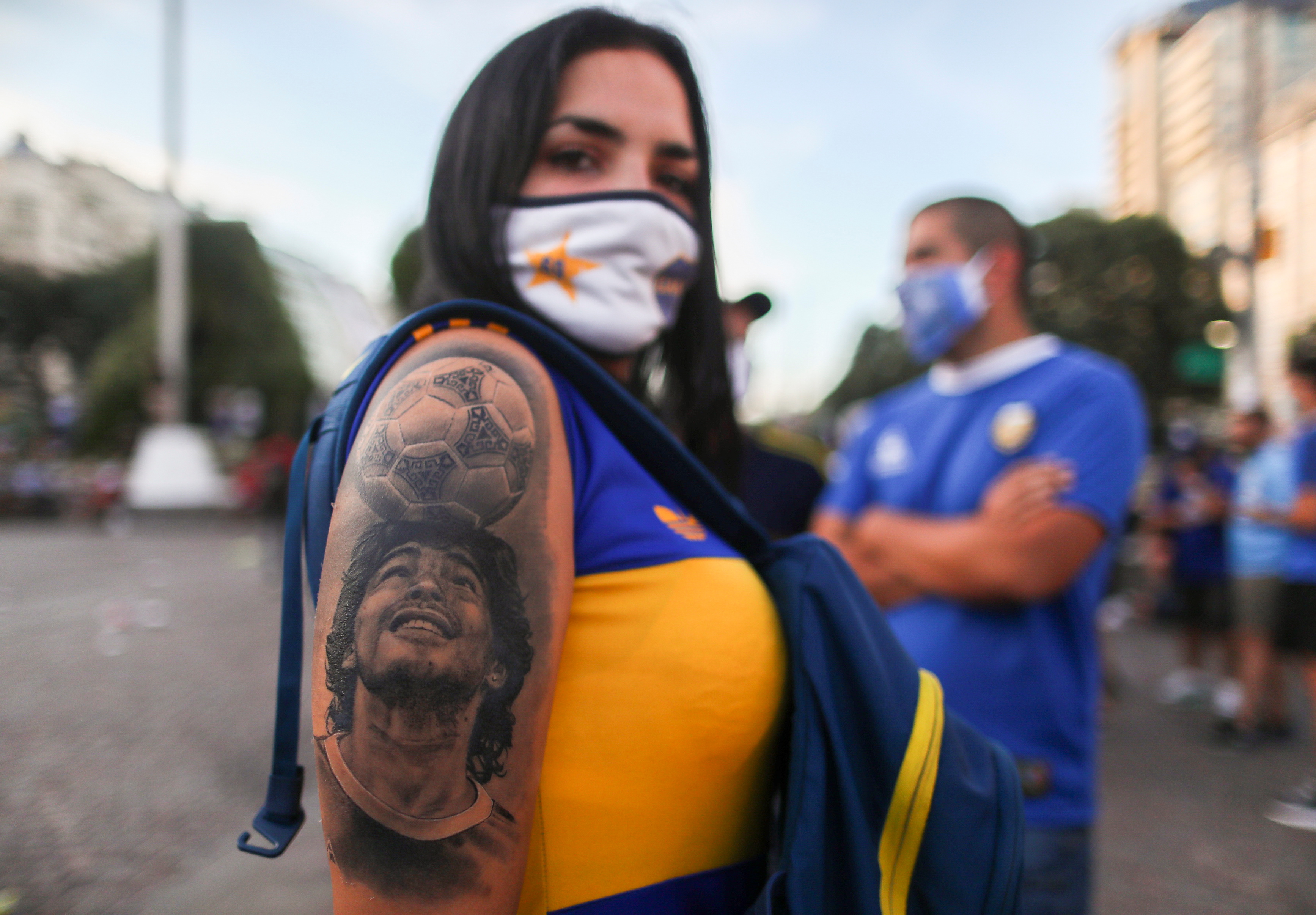 Demonstrators donned Argentinian football jerseys, held banners and flags emblazoned with Maradona’s face, as well as a cut-out of the superstar, during a rally in central Buenos Aires, the capital.