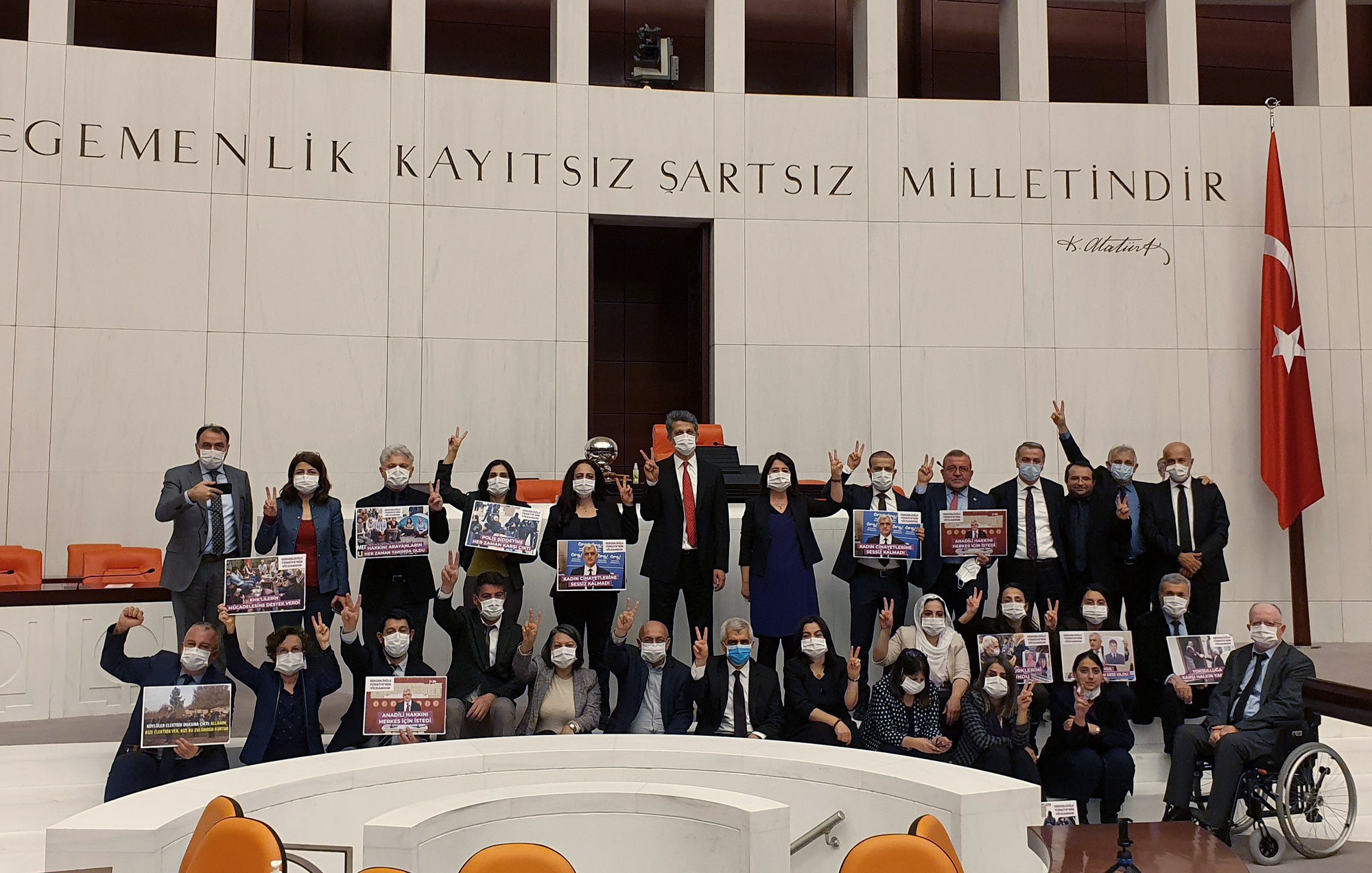 HDP legislators remained in the assembly hall in a show of solidarity.