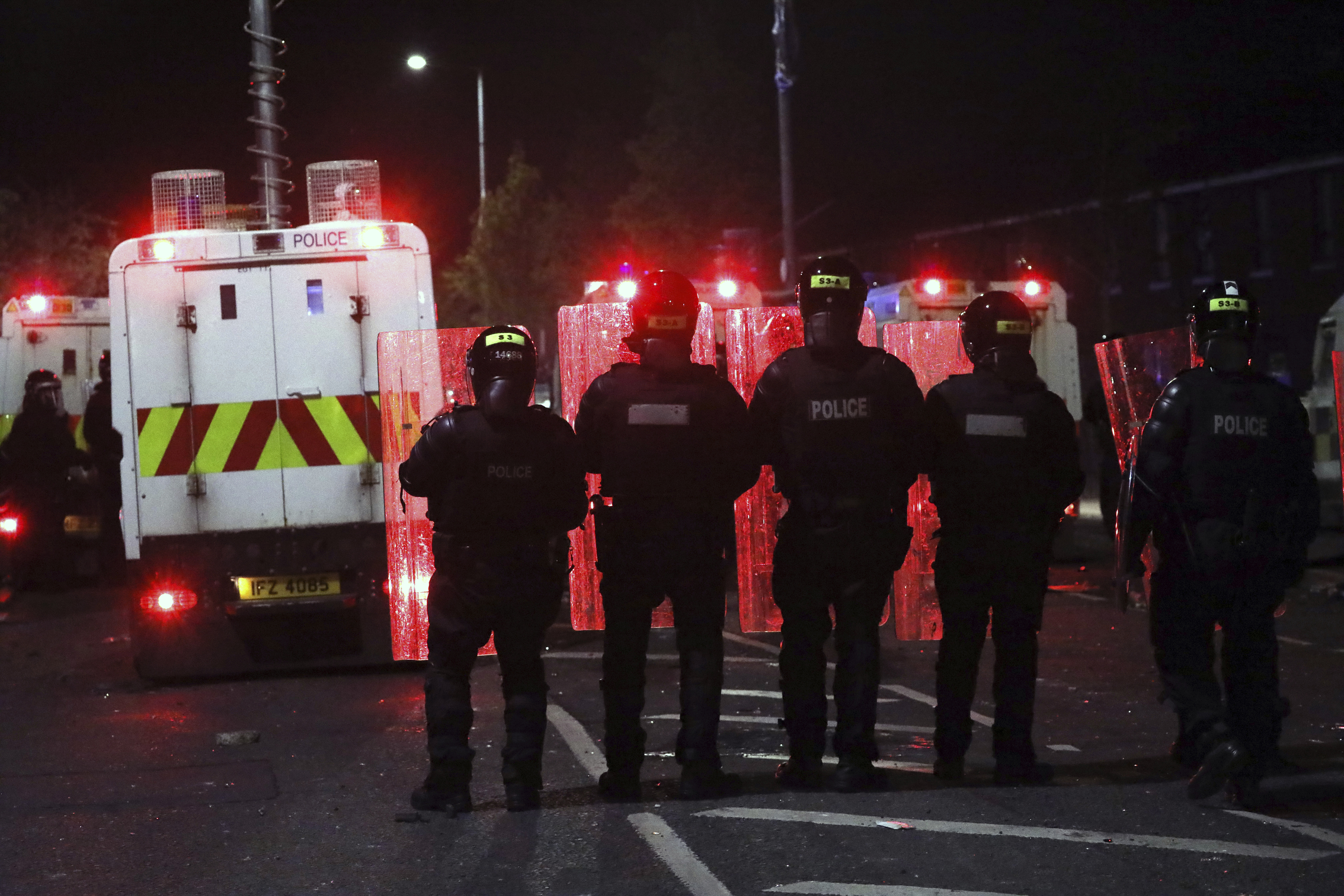 Days later, a loyalist protest of 100 people in an area of South Belfast on Good Friday quickly descended into violence, with petrol bombs being thrown and police officers injured.