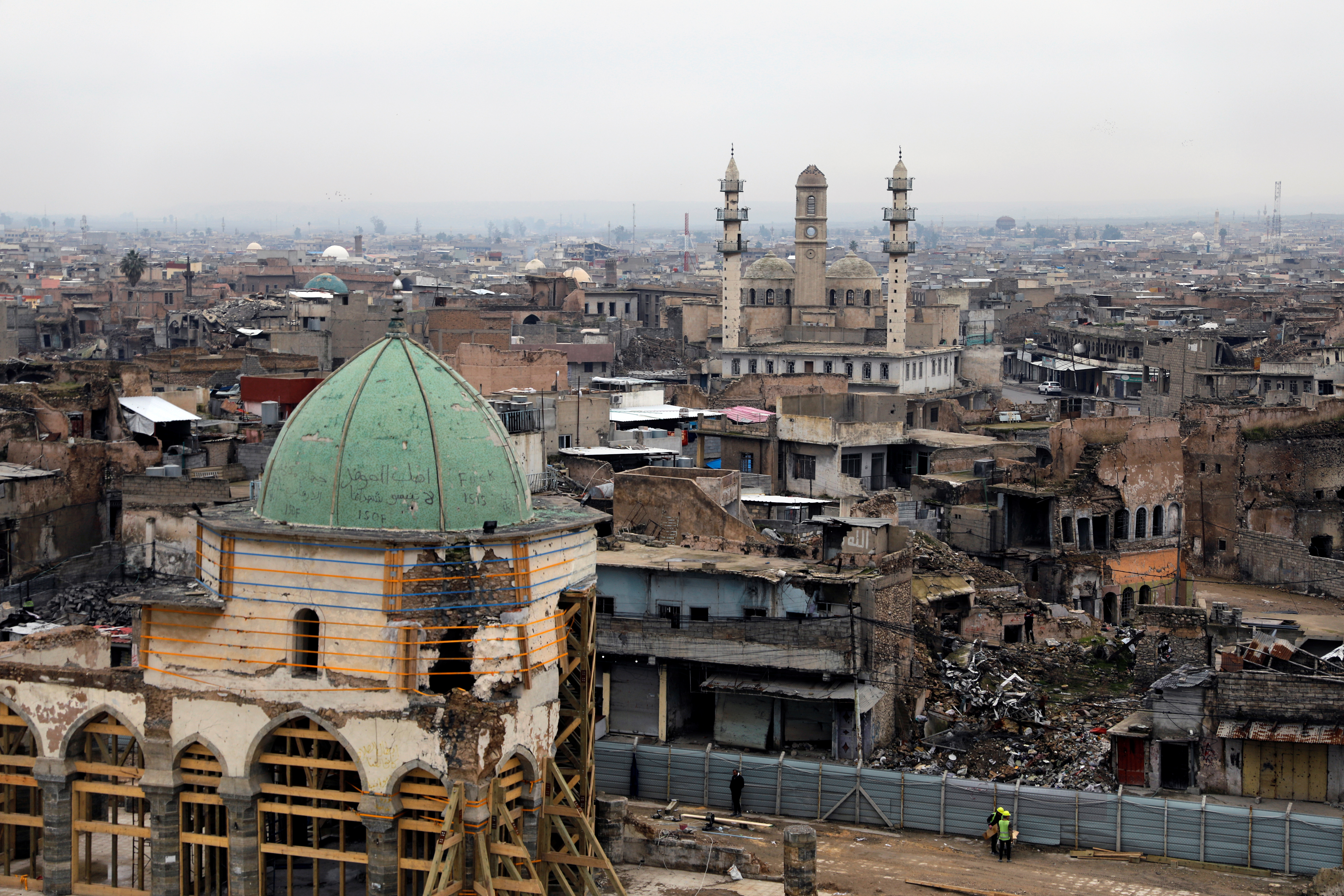 The 12th century mosque, famous for its leaning minaret was damaged in 2017 fighting between ISIL, US and Iraqi forces.
