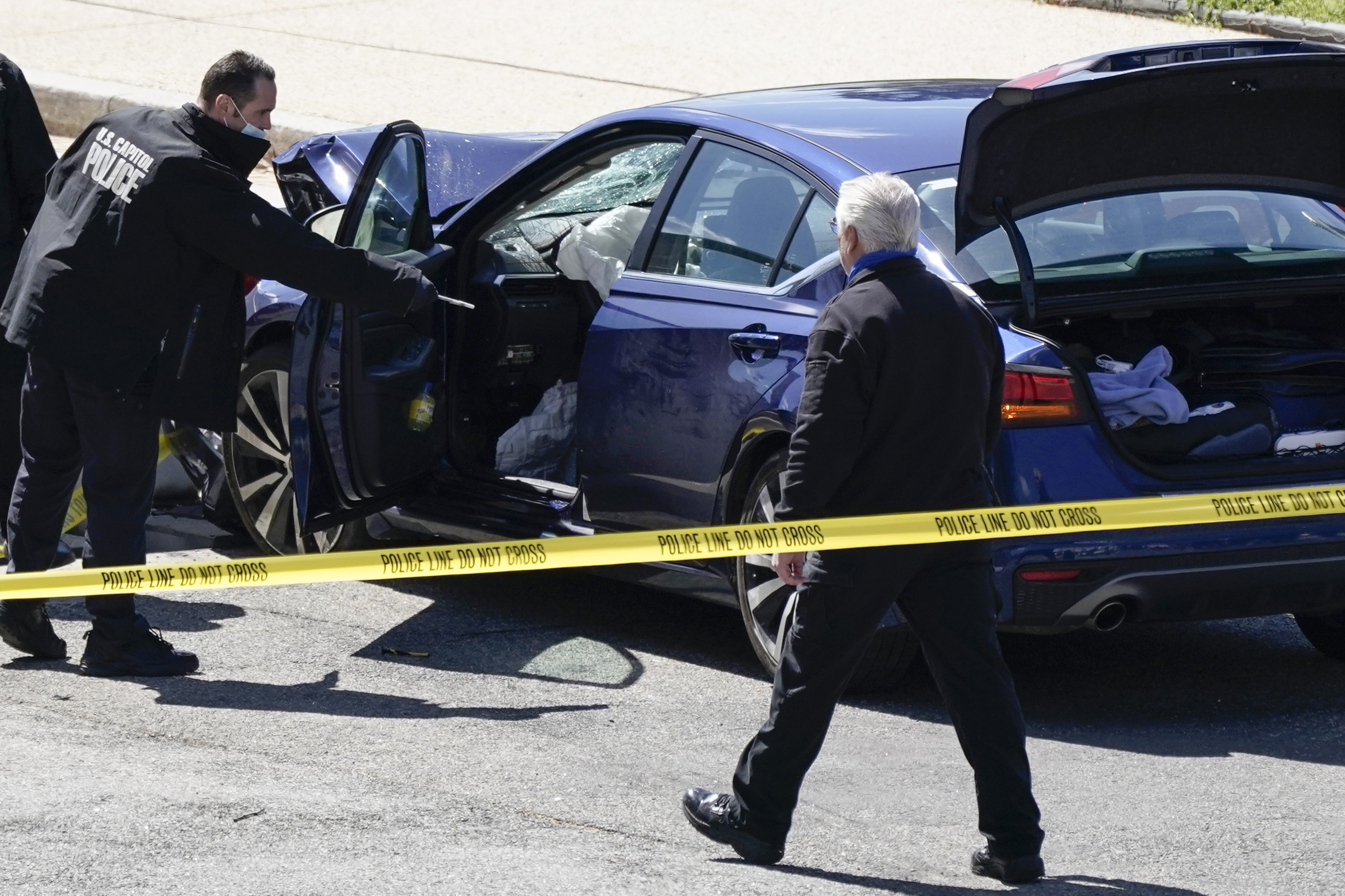 “The suspect rammed his car into two of our officers, and then hit the north barricade barrier. At such time the suspect exited the vehicle with a knife in hand,” acting Capitol Police Chief Yogananda Pittman said. “Our officers then engaged that suspect. He did not respond to verbal commands.