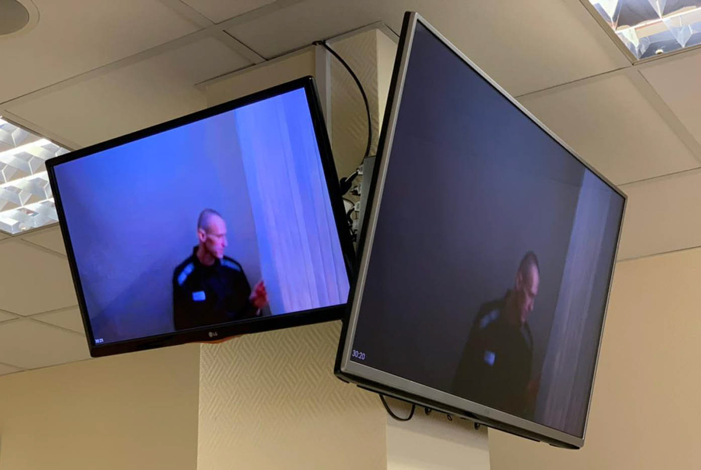 In his first public appearance since ending a weeks-long hunger strike, jailed Kremlin critic Alexey Navalny looked visibly thinner in a court hearing, which he attended via video link.