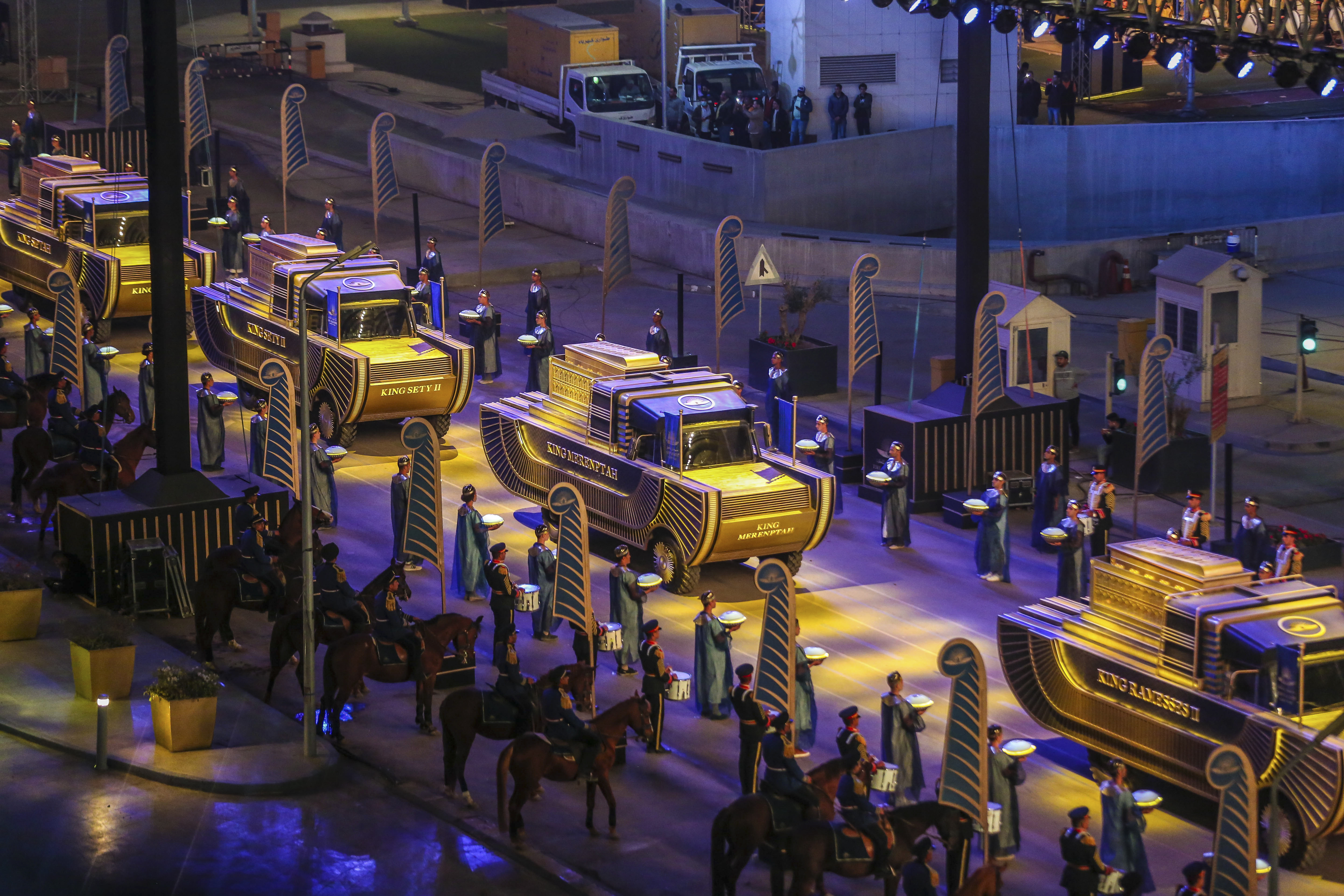 ‘Pharaohs’ Golden Parade’ snakes across Cairo, transporting mummified remains of 18 kings and four queens to their new resting place.