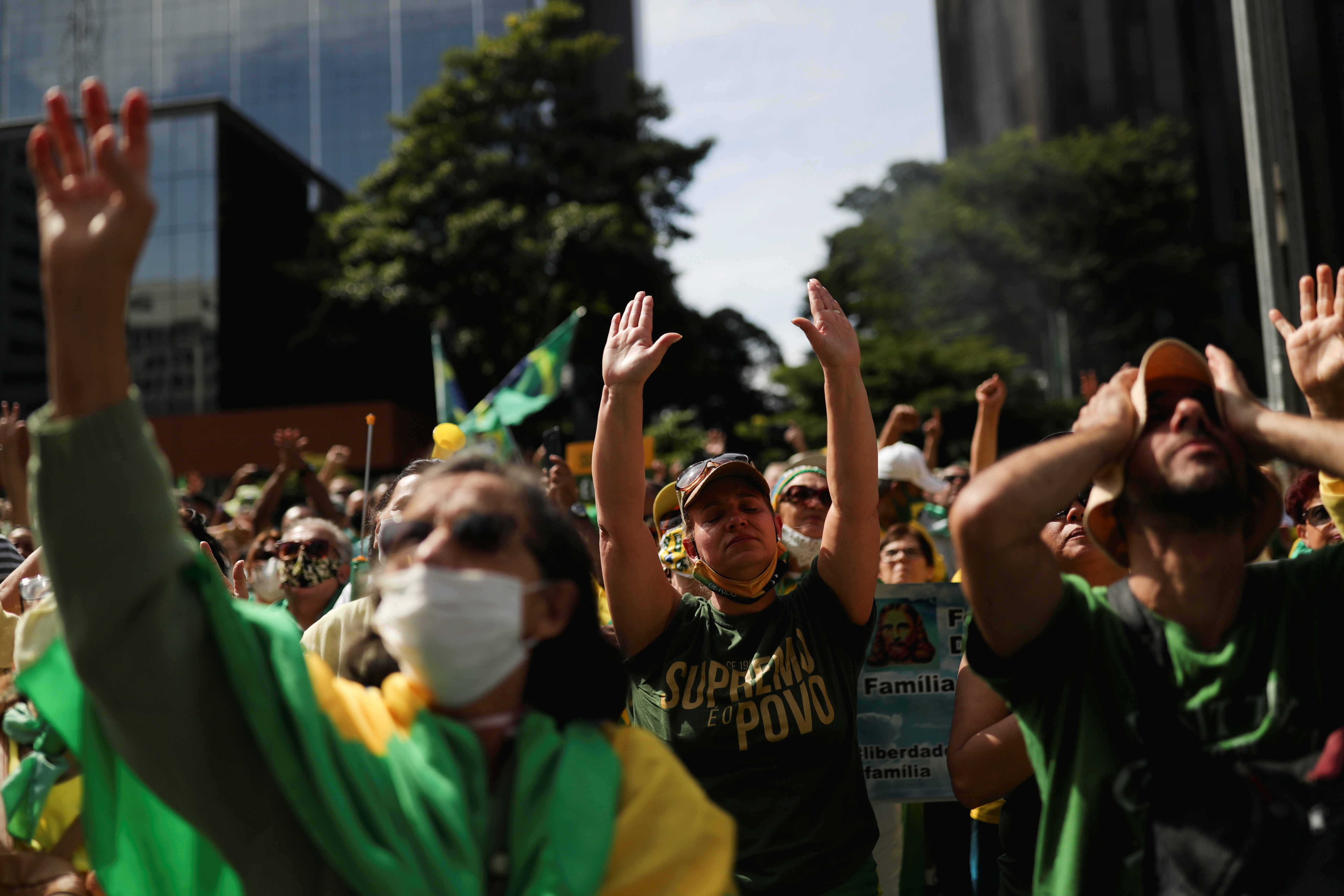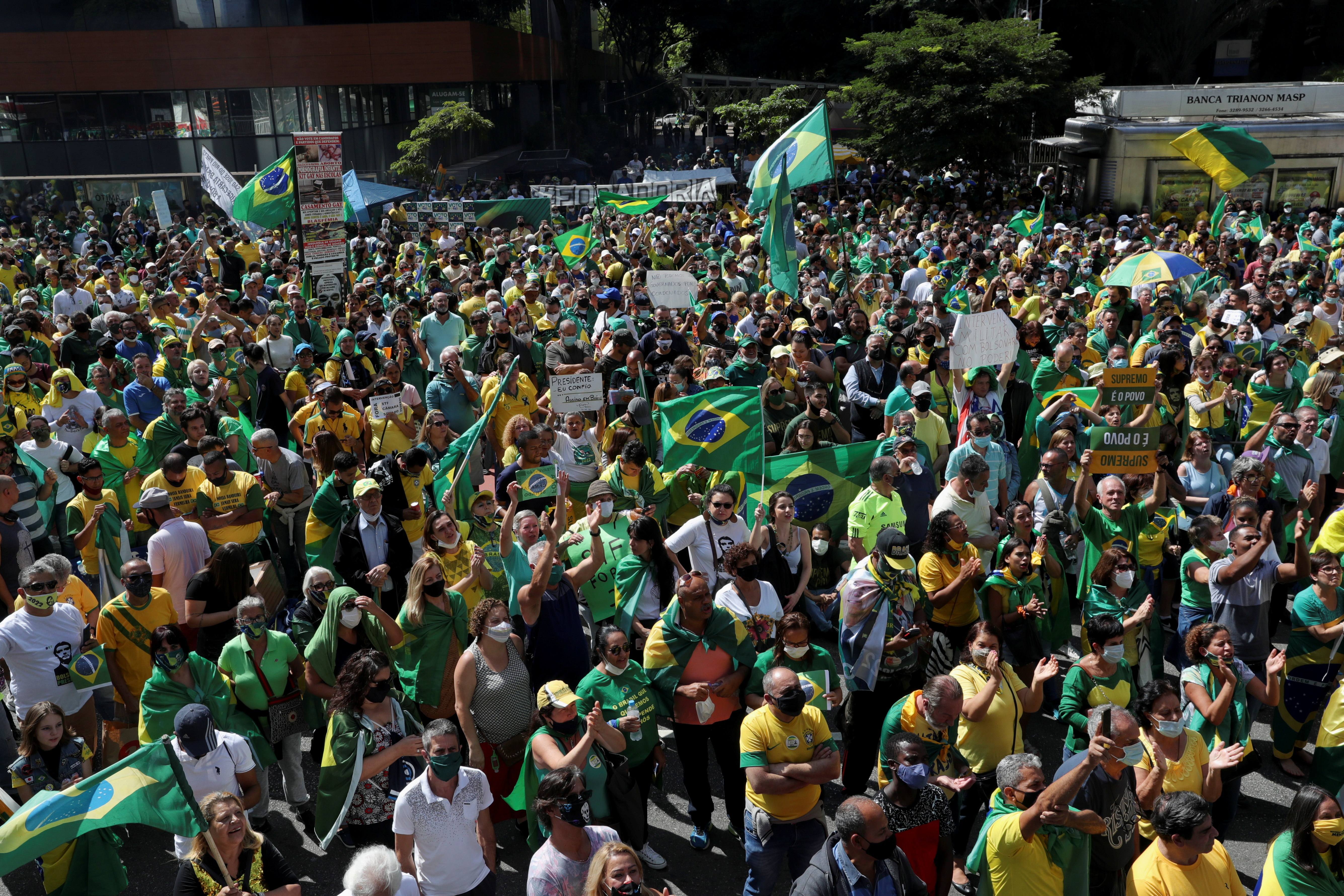 Protesters gathered in Sao Paulo, Rio de Janeiro, and the capital, Brasilia, where thousands assembled on the Esplanade of Ministries as Bolsonaro briefly passed overhead in a helicopter.
