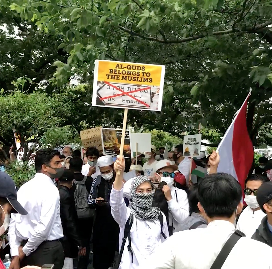 Hundreds of demonstrators in Japan’s capital, Tokyo, gathered near the Israeli embassy to show their support for Palestinians.