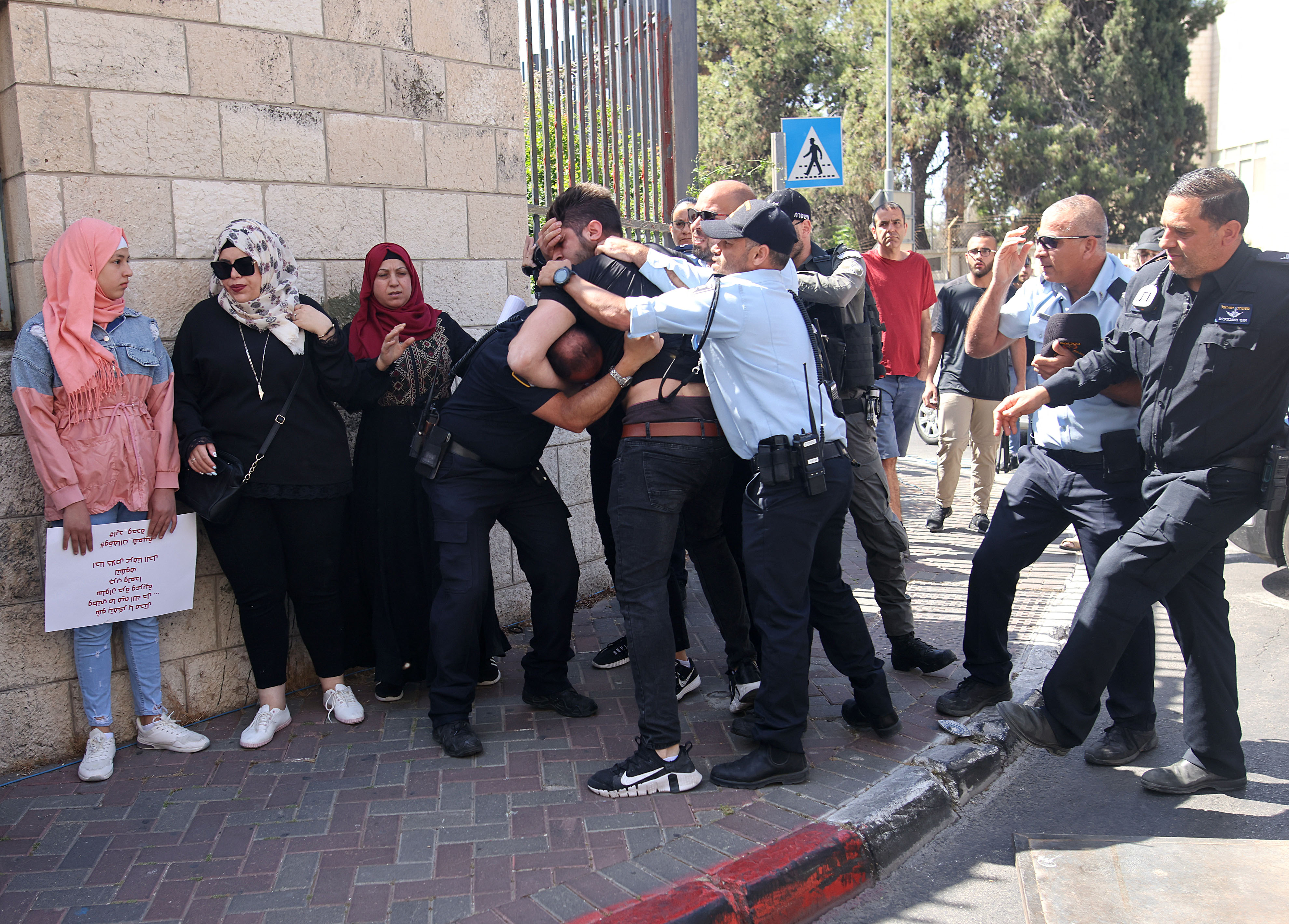 Heavily armed Israeli forces were also present in front of the court. At least one Palestinian, Qutaiba Odeh, was arrested at the protest. Odeh, a father of three who lives in the al-Bustan area in Silwan, has a demolishing order on his house.