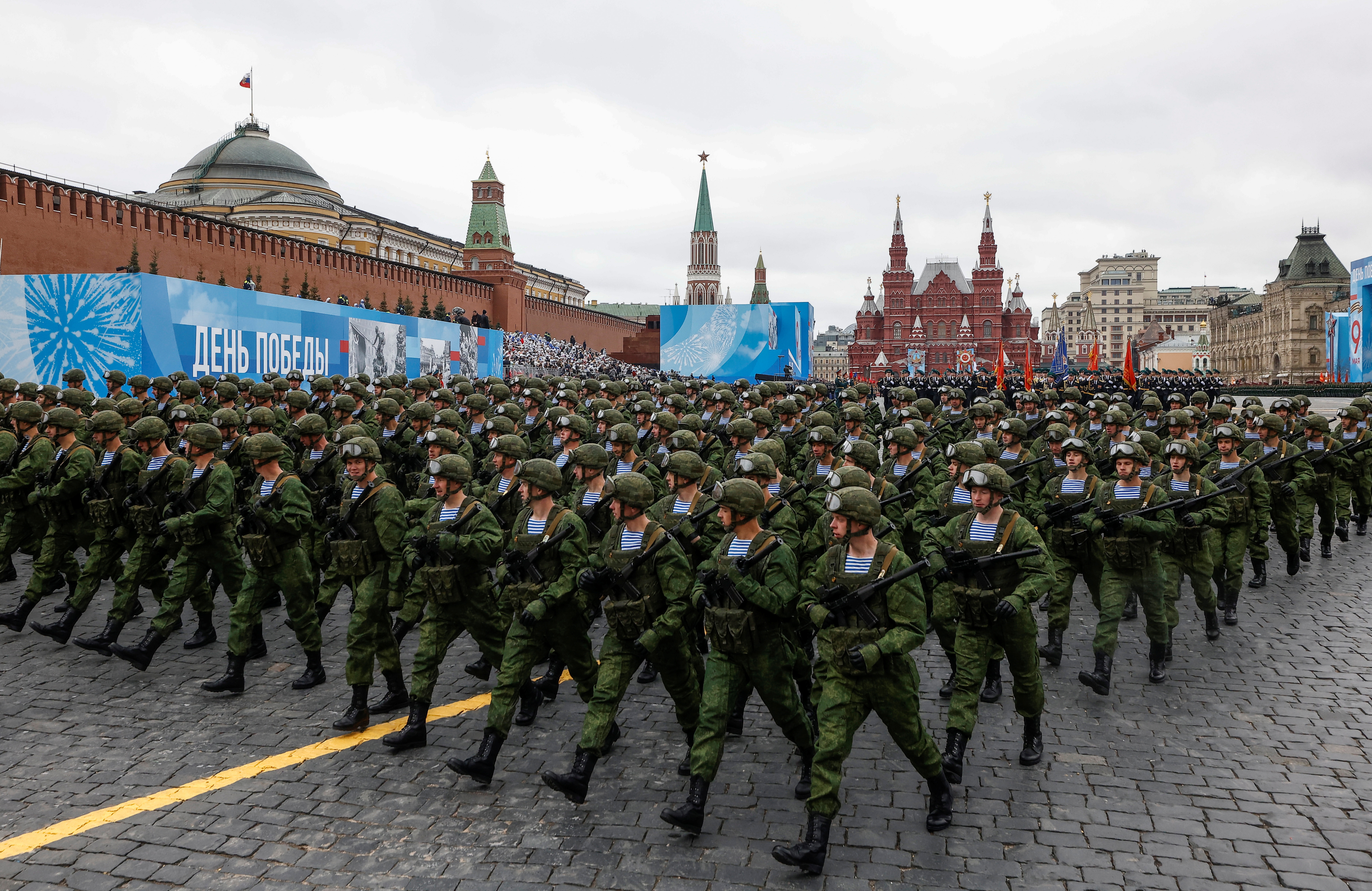 Putin’s speech on Sunday came at the start of an annual parade that sees military hardware roll through the streets of Moscow. More than 12,000 military personnel took part in the march, as well as some 190 pieces of military equipment and 76 fighter jets and helicopters.