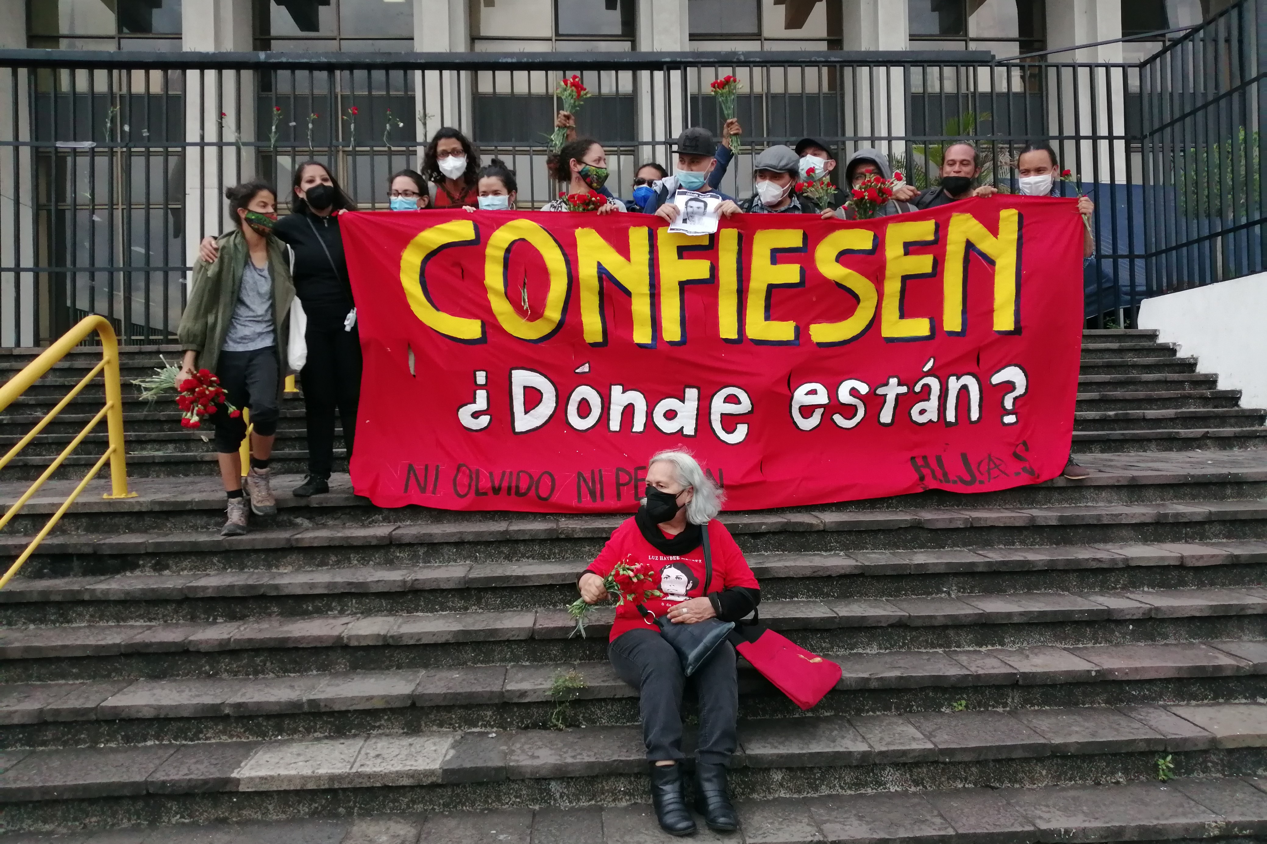 After the 1996 Peace Accords, Sanchez and other children, nieces and nephews of the disappeared founded the HIJOS collective to continue the older generations’ fight for justice. They set up a loudspeaker outside Wednesday to broadcast audio of the courtroom proceedings and set off firecrackers as judge Miguel Angel Galvez read out the indictments.