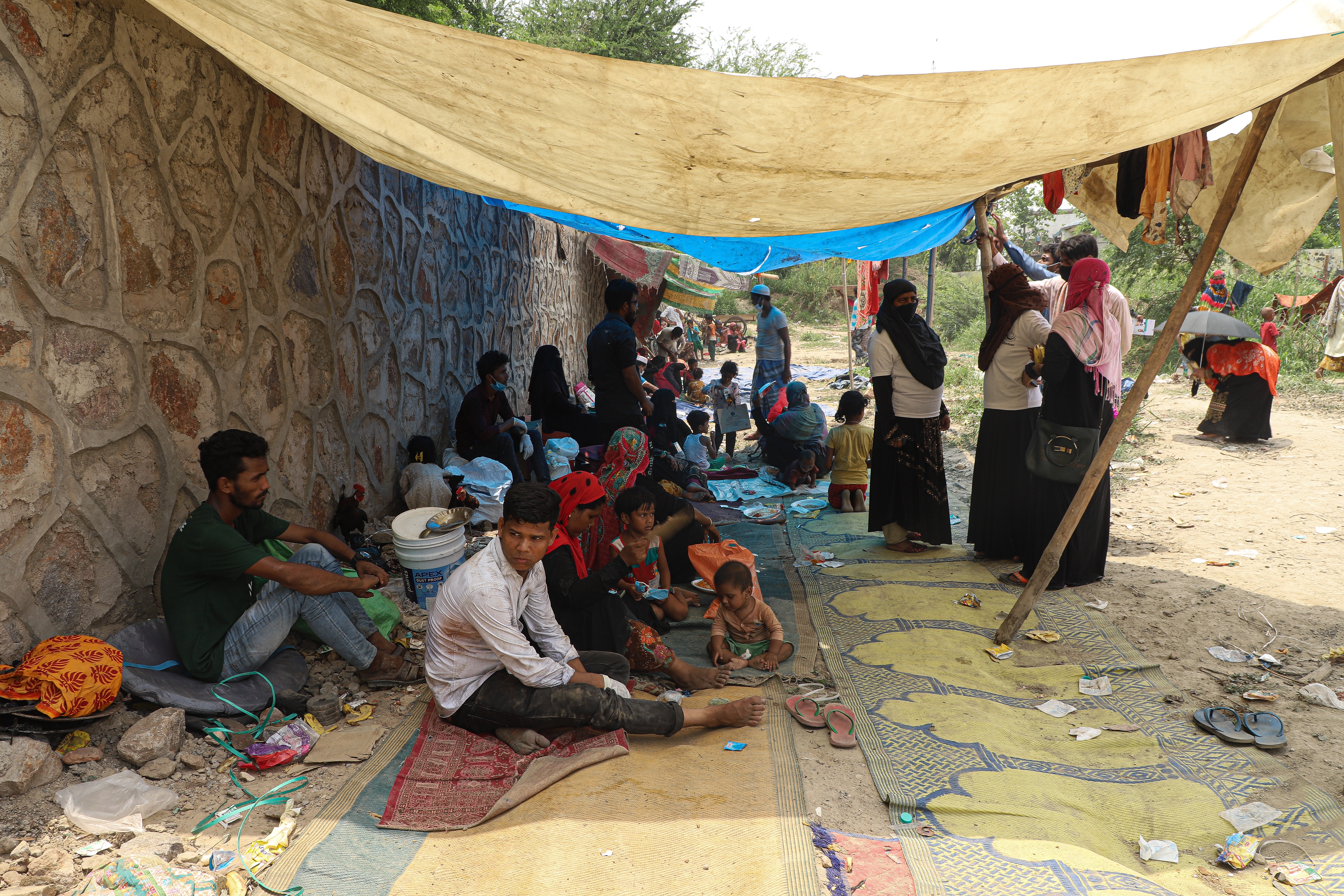 “We were hungry. Some people came here in the morning and gave us bananas and milk,” said refugee Tayyab Begum, 45.
