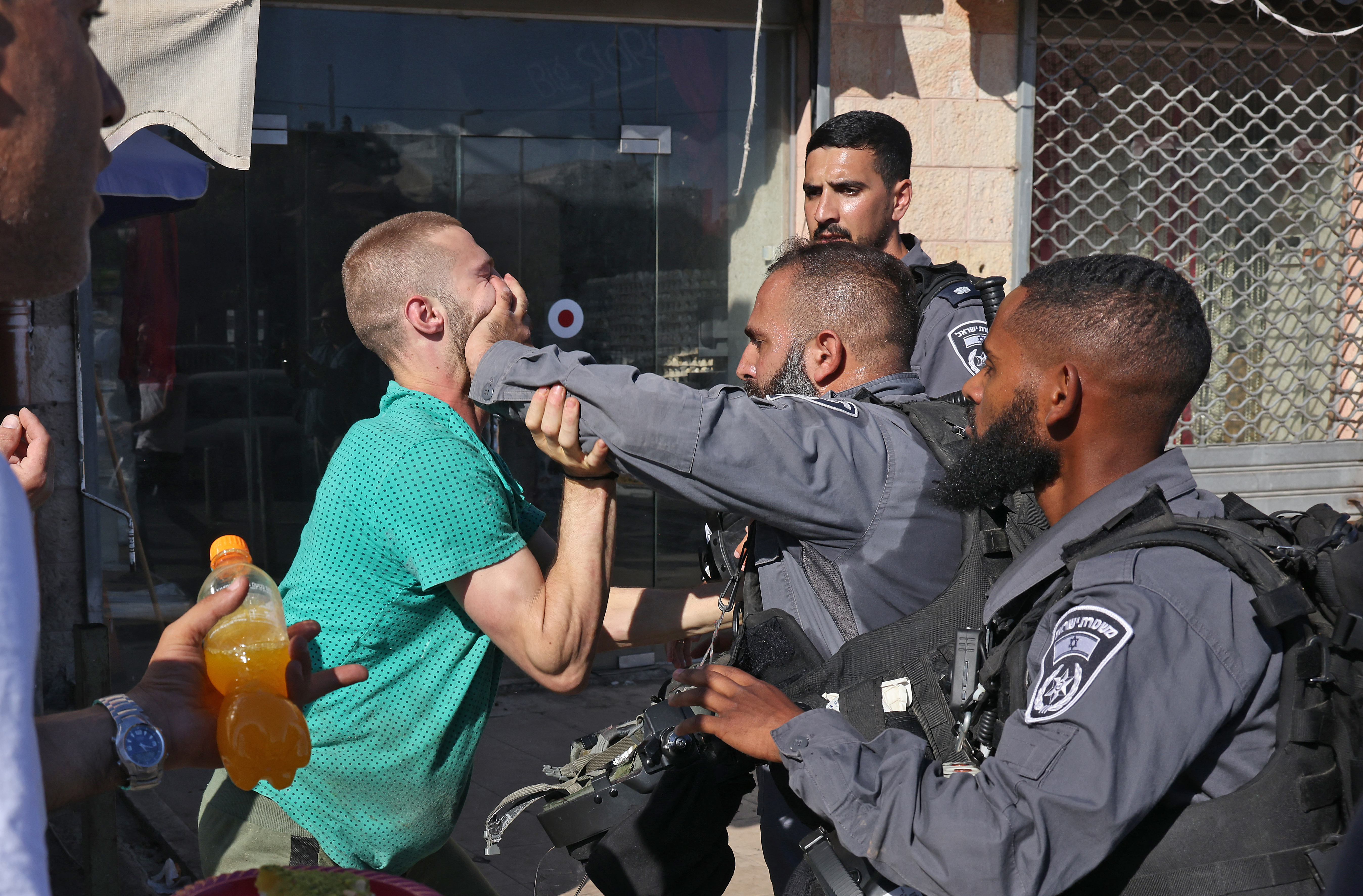 A video shared on social media showed several Israeli policemen beating up a Palestinian man near Damascus Gate, as they dragged him down a flight of steps.