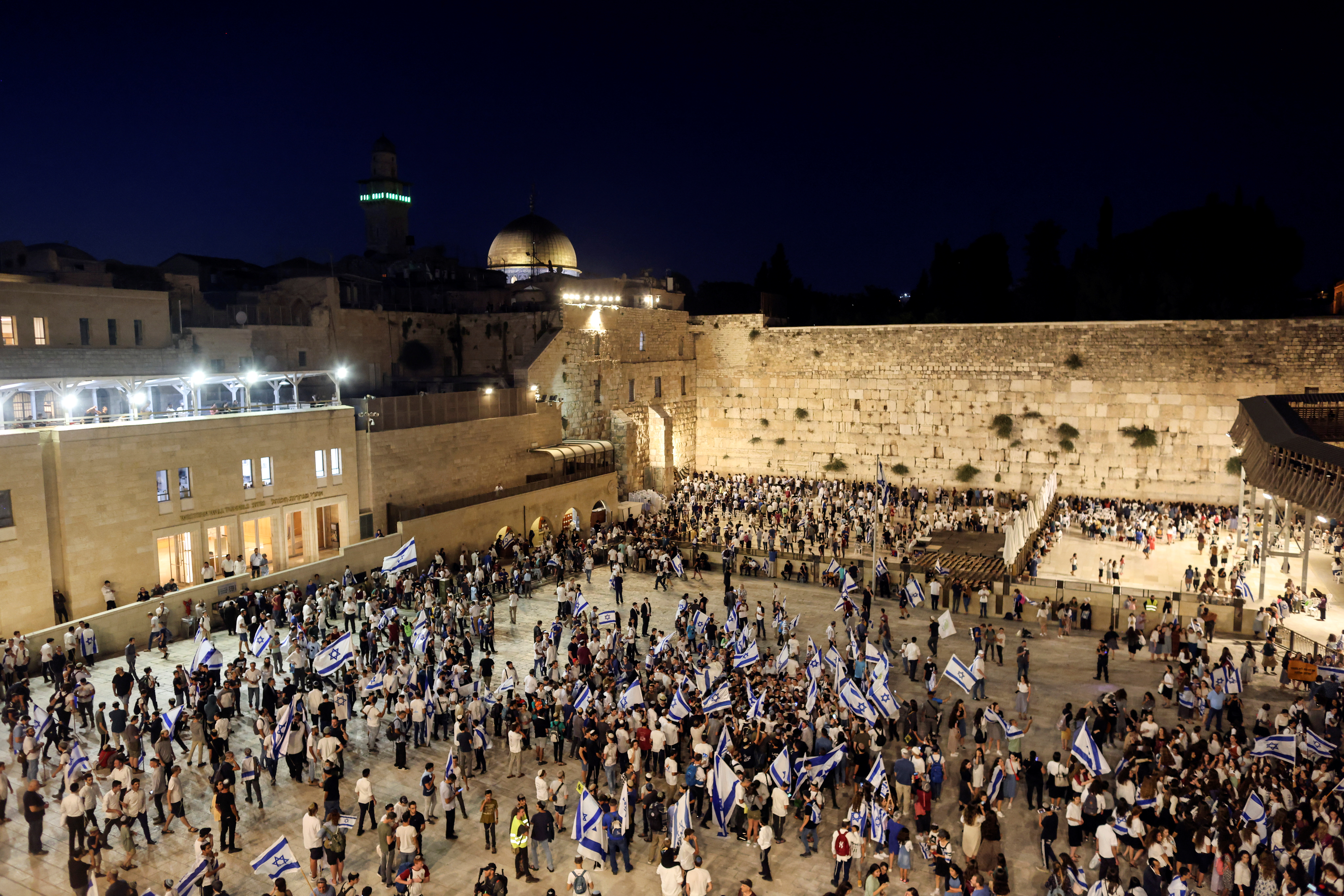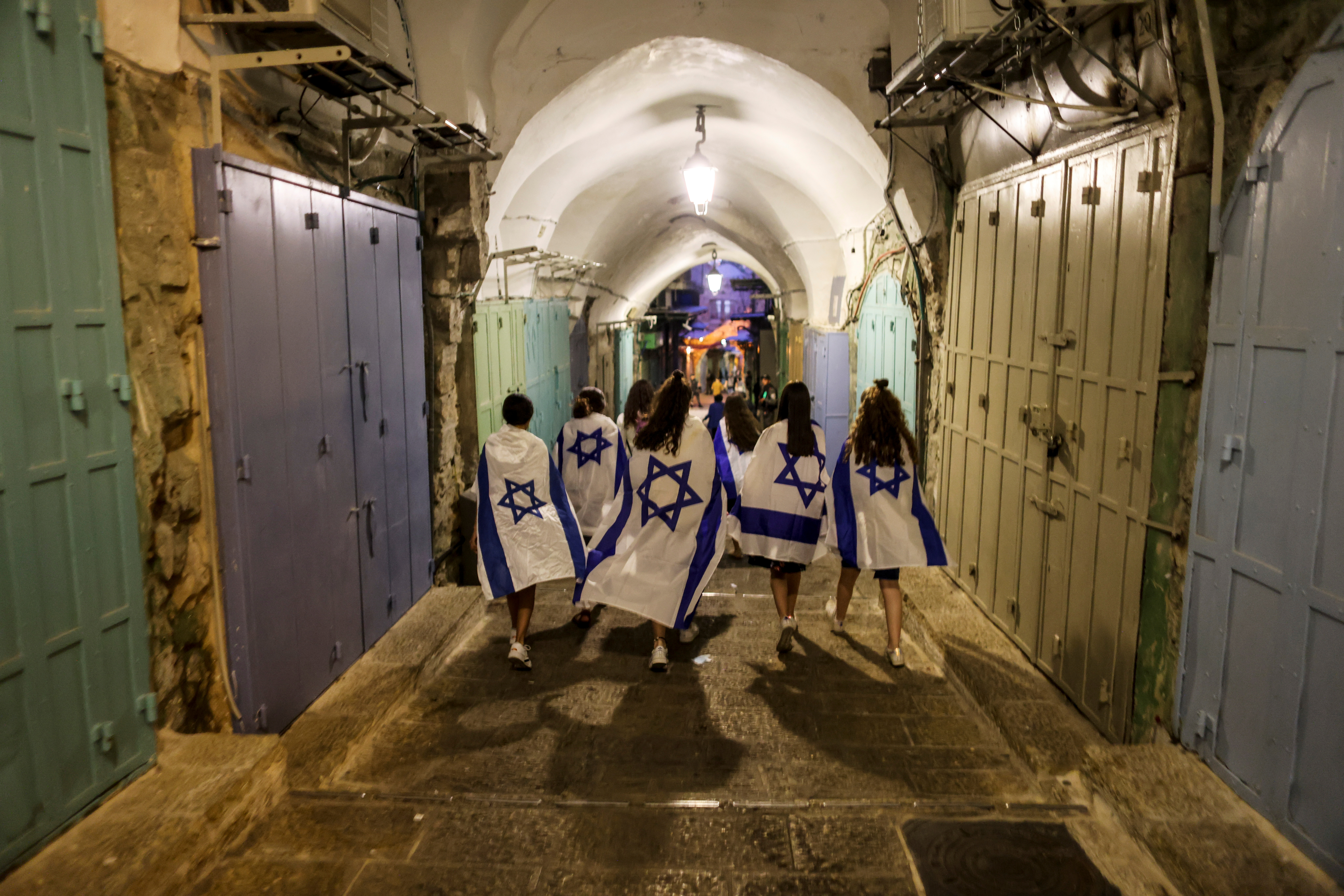 The march has passed through the Jewish quarter and will end at the Western Wall, where Jews can pray.