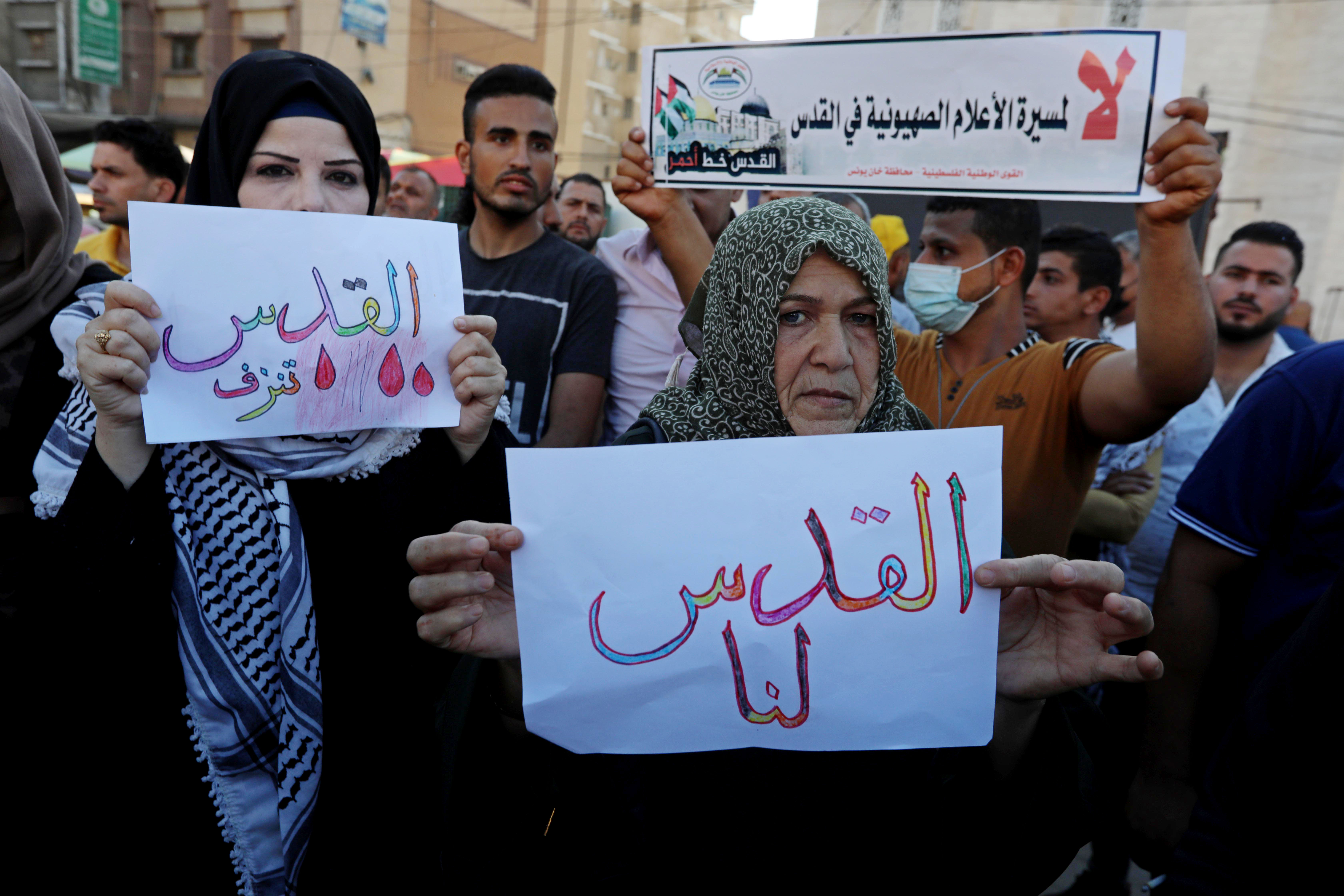“They have said that these protests are just to send a message, that while the flag march provokes Palestinians, they will not be quiet as all options are in front of the Palestinian resistance to respond to any kind of aggression by Israeli authorities towards the people of Jerusalem,” she said, speaking from Gaza City.