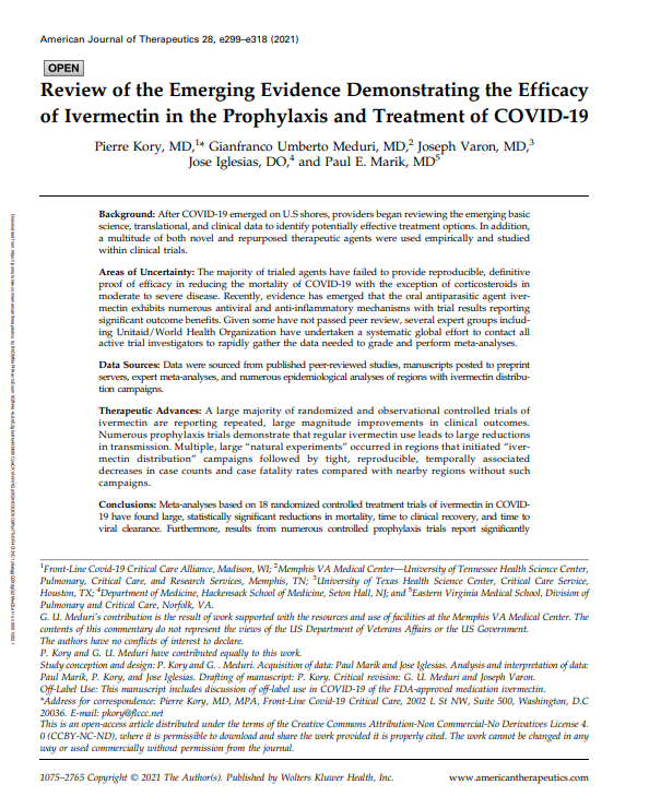 “Some of us have also written to the government on this,” he said, sharing an article titled Emerging Evidence Demonstrating the Efficacy of Ivermectin in Prophylaxis and Treatment of COVID-19, published in the American Journal of Therapeutics.