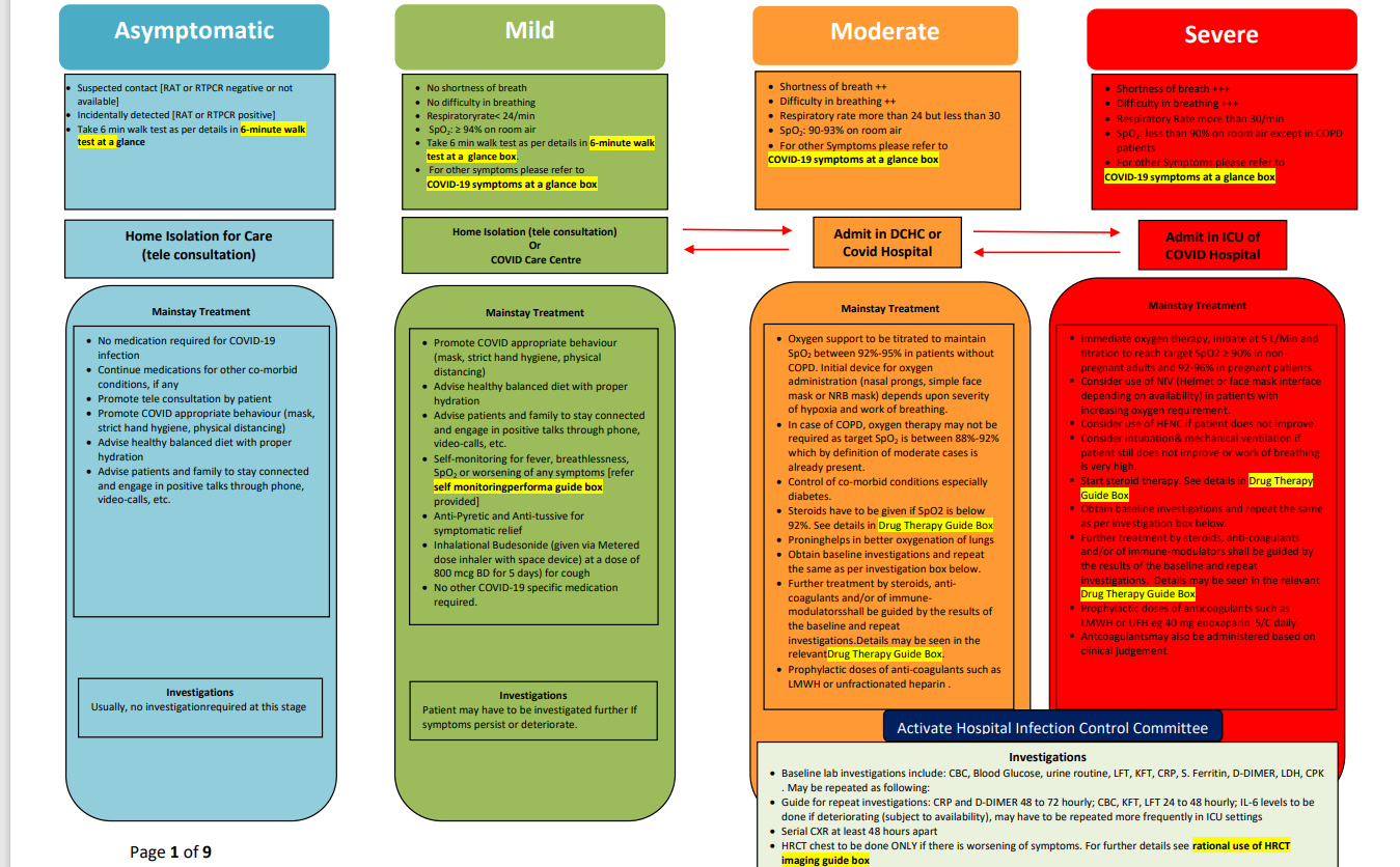 Steroids and anticoagulants were advised for moderate cases, and immediate oxygen therapy, intubation, ventilation and immune-modulators were added for severe cases.
