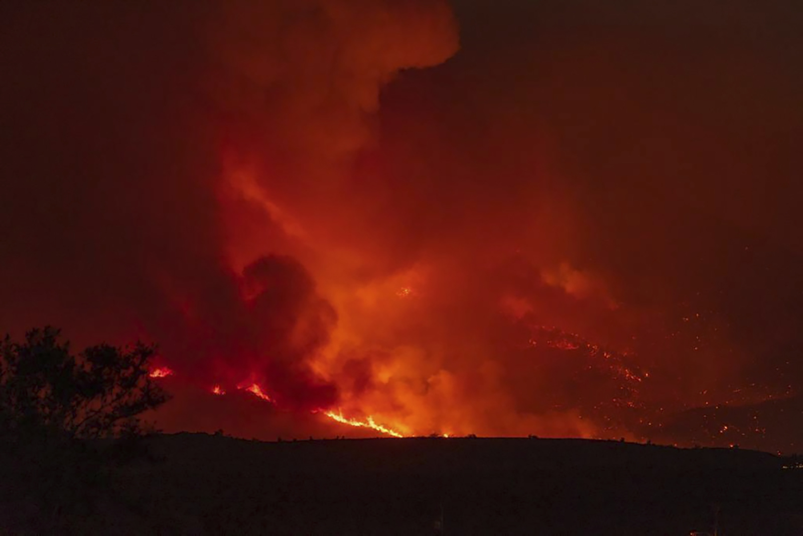 Residents near the small communities of Pine and Strawberry remain evacuated because of another wildfire that has hopped among treetops, with flames jumping ahead carried by wind. Some local roads also were closed.