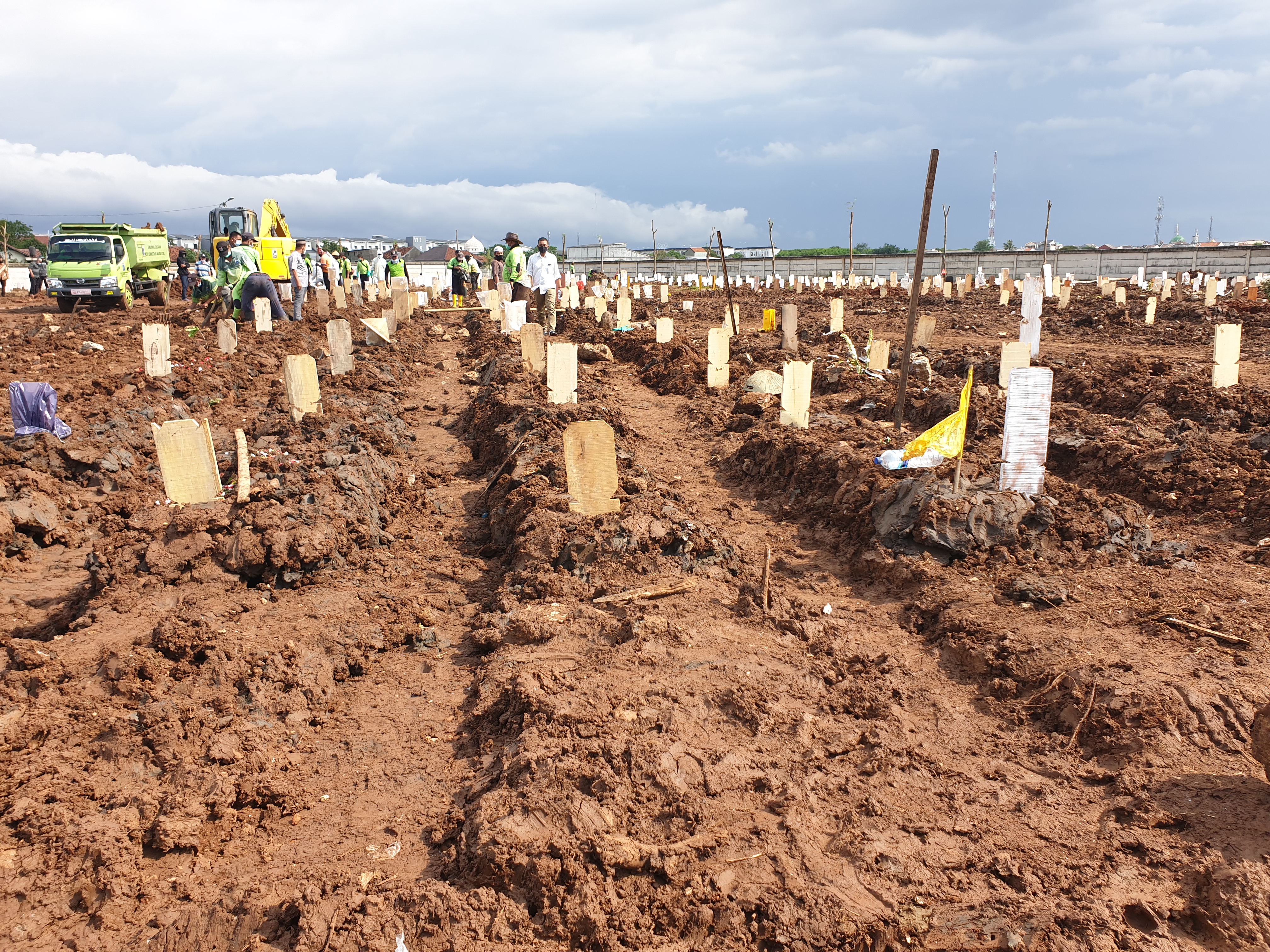 “This is a new cemetery … the other locations are full. There are just so many COVID cases, so they have to bring them here,” Darsiman said.