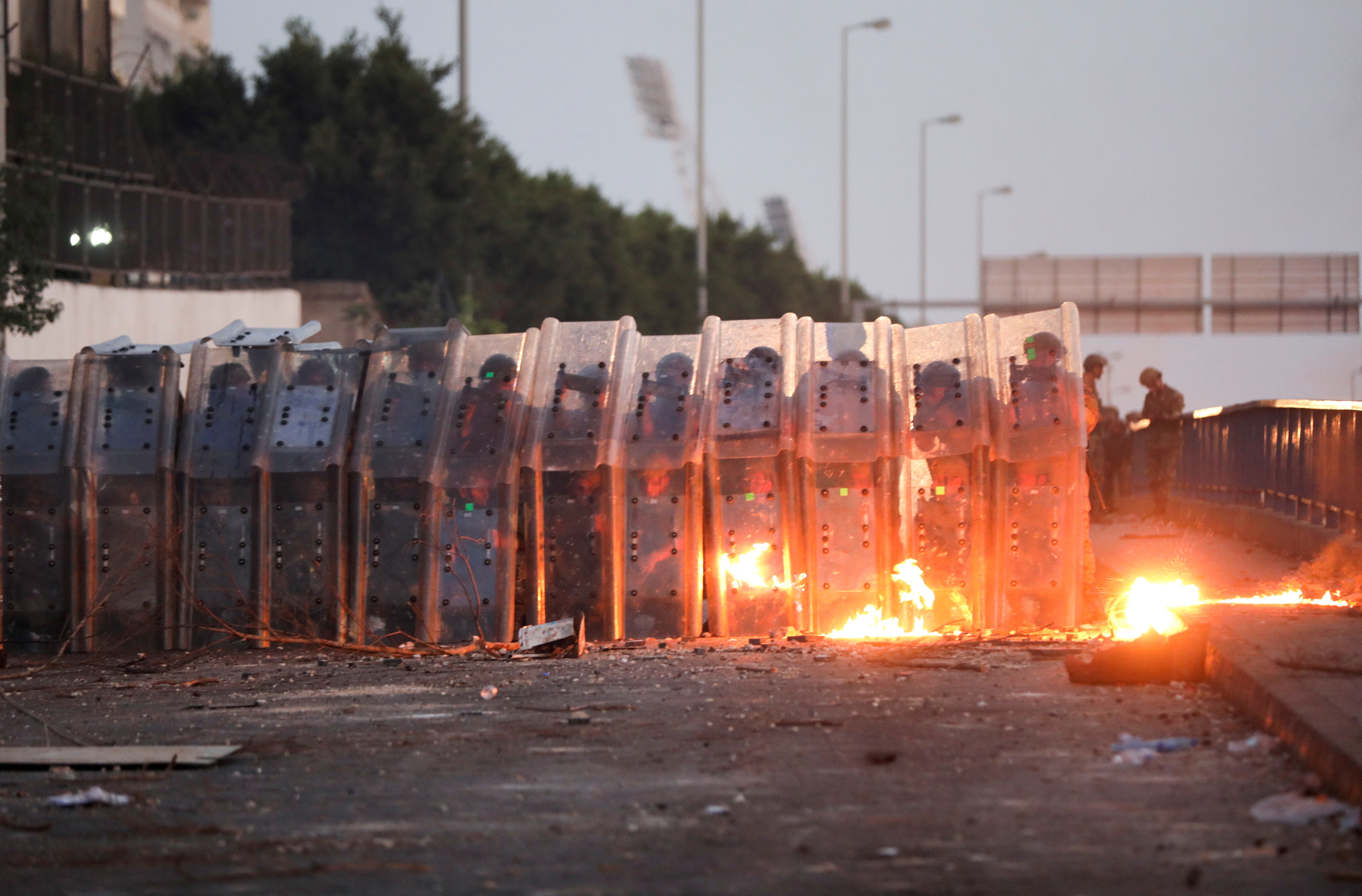 Later on Thursday, supporters of Hariri and his Future Movement party took to the streets, blocking roads with burning tyres and rubbish bins in several areas around Beirut. Several dozen protesters at Beirut’s Sports City scuffled with Lebanese soldiers in riot gear who fired rubber-coated steel bullets.