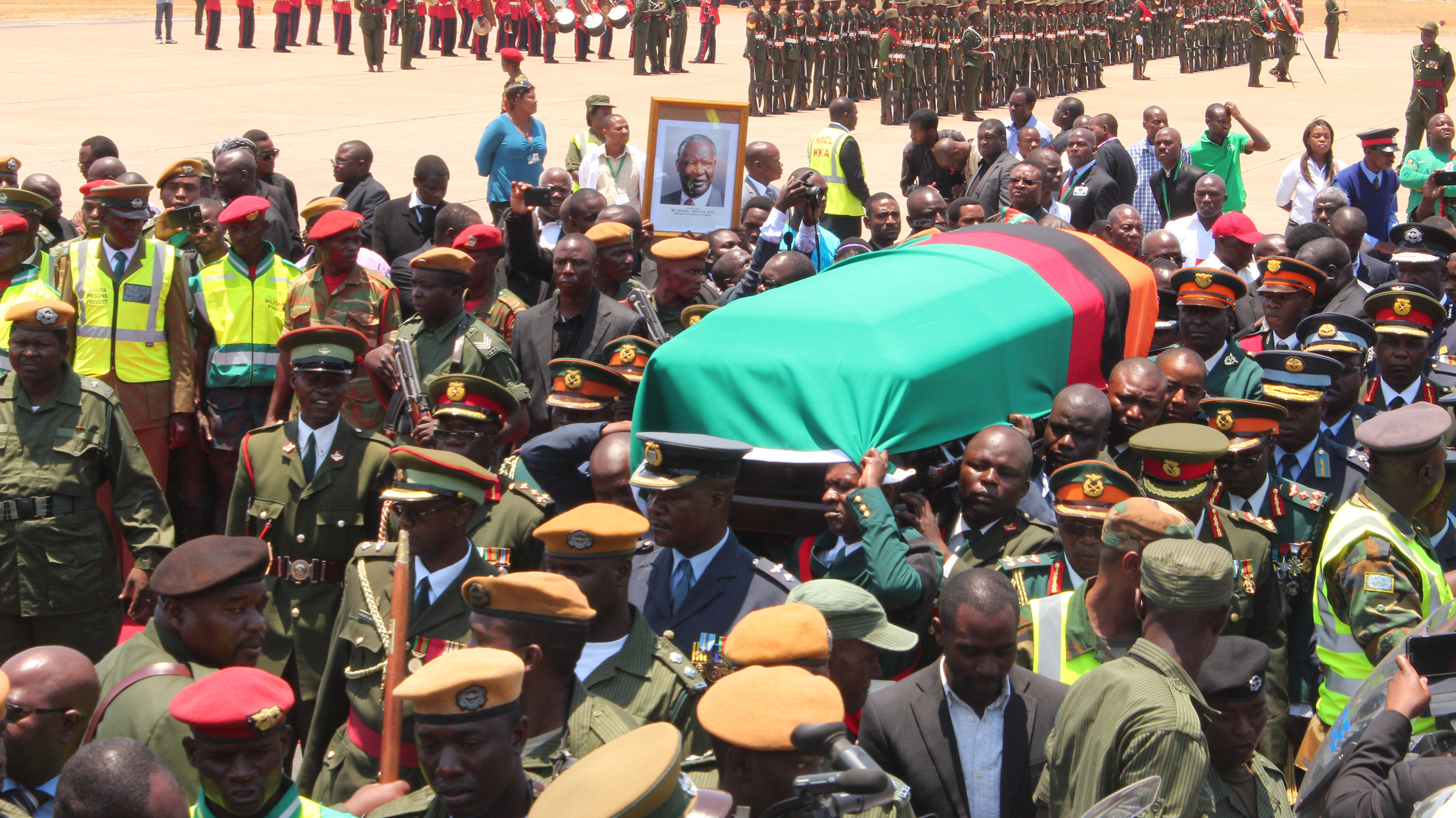 Zambia declared a period of mourning after his death, with flags flown at half-mast, while his body was taken around the country for the public to pay their respects.