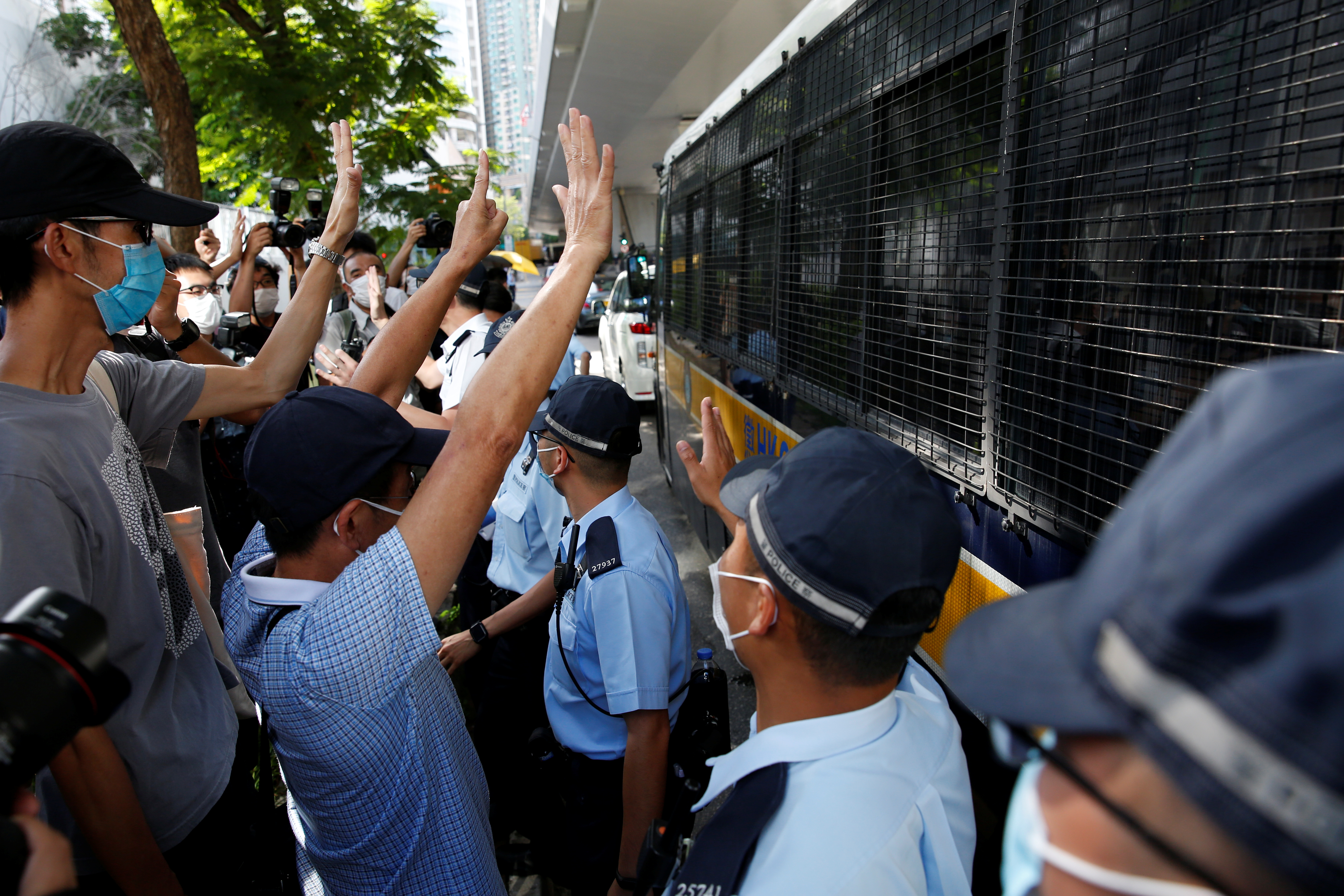 Outside the court, scores of people showed their support as they stood at an enclosed footbridge near the gate, where the police van carrying Tong was to emerge.