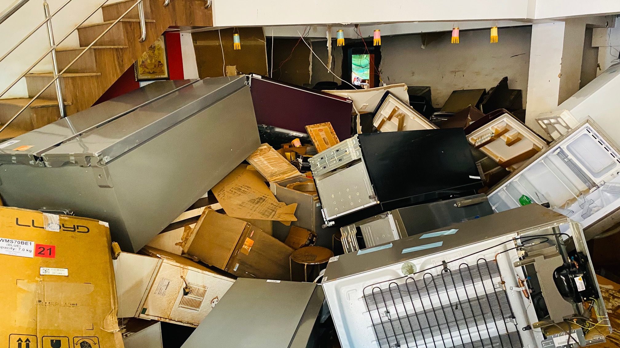 “I lost six warehouses and one big showroom full of electronic goods. We tried walking in the floodwater to try and save some [sections] of our shop, but it was not possible at all,” he said.