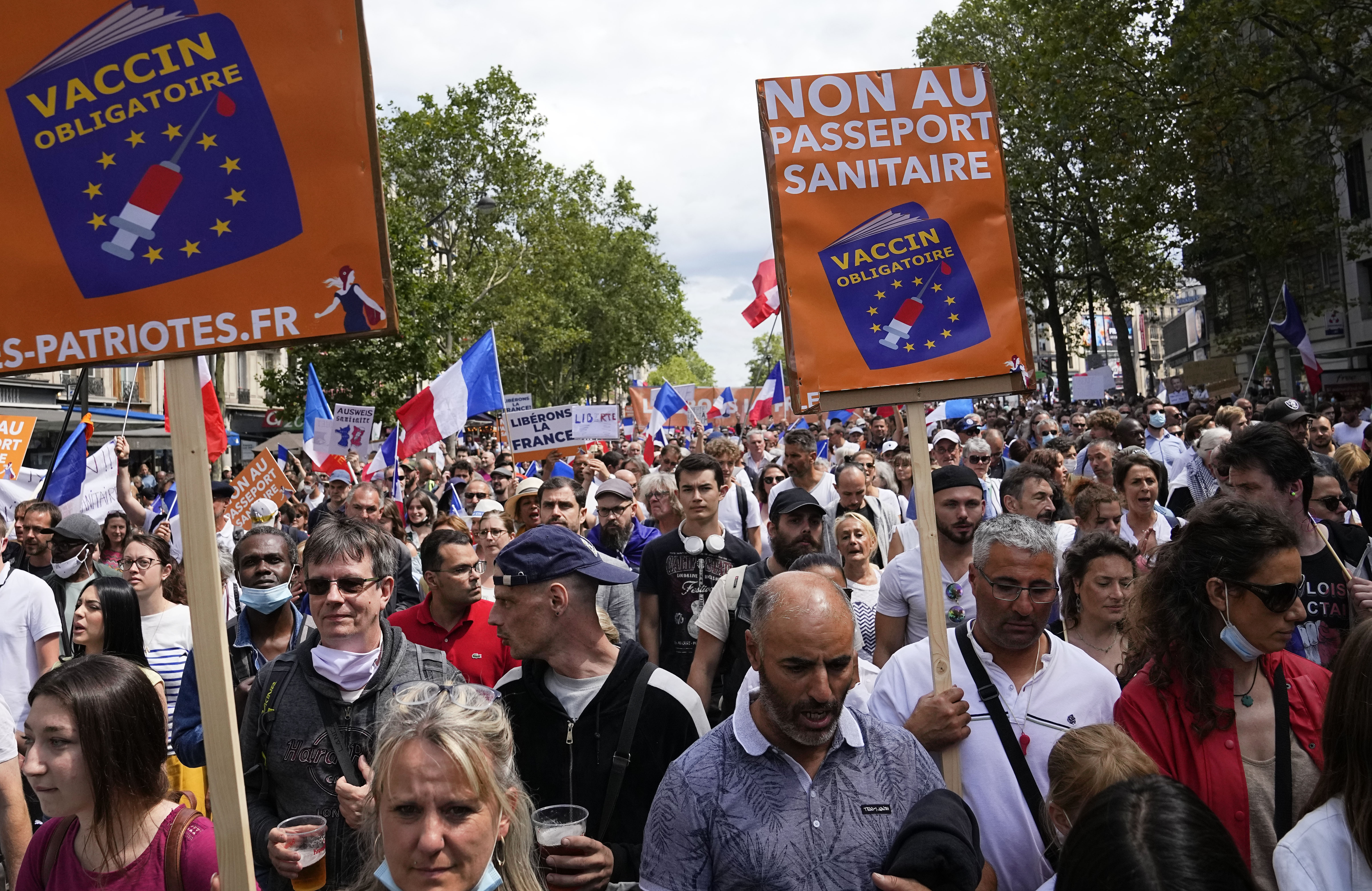 Protesters were also out in other cities like Marseille, Lyon, Montpelier, Nantes and Toulouse, shouting “Freedom!” and “No to the health pass!”