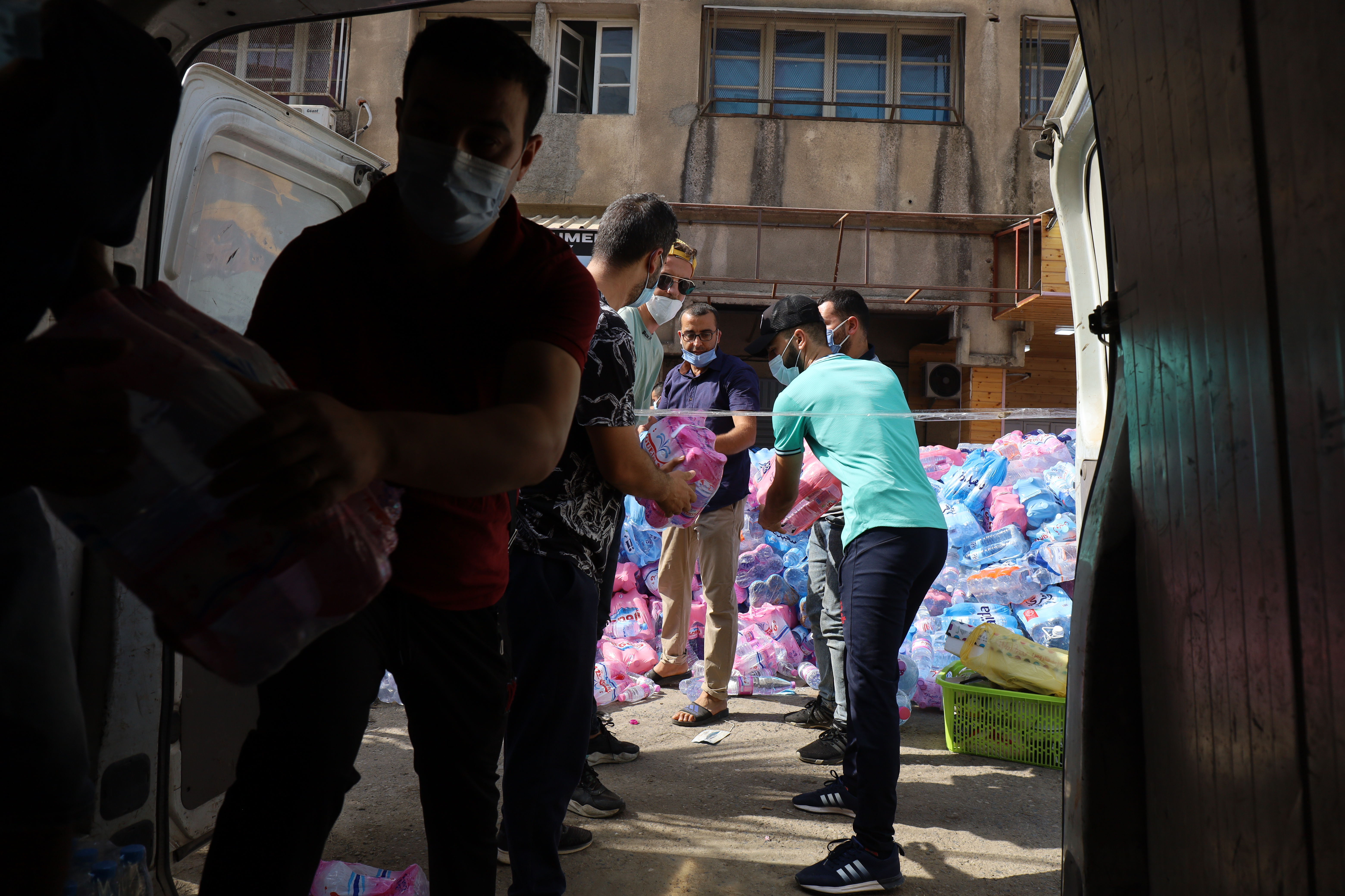 Tizi Ouzou, Algeria – With bloodshot eyes and hoarse voices, young volunteers buzz around a line of shops along Krim Belkacem Boulevard in their fluorescent vests. Most of them have not slept in days.