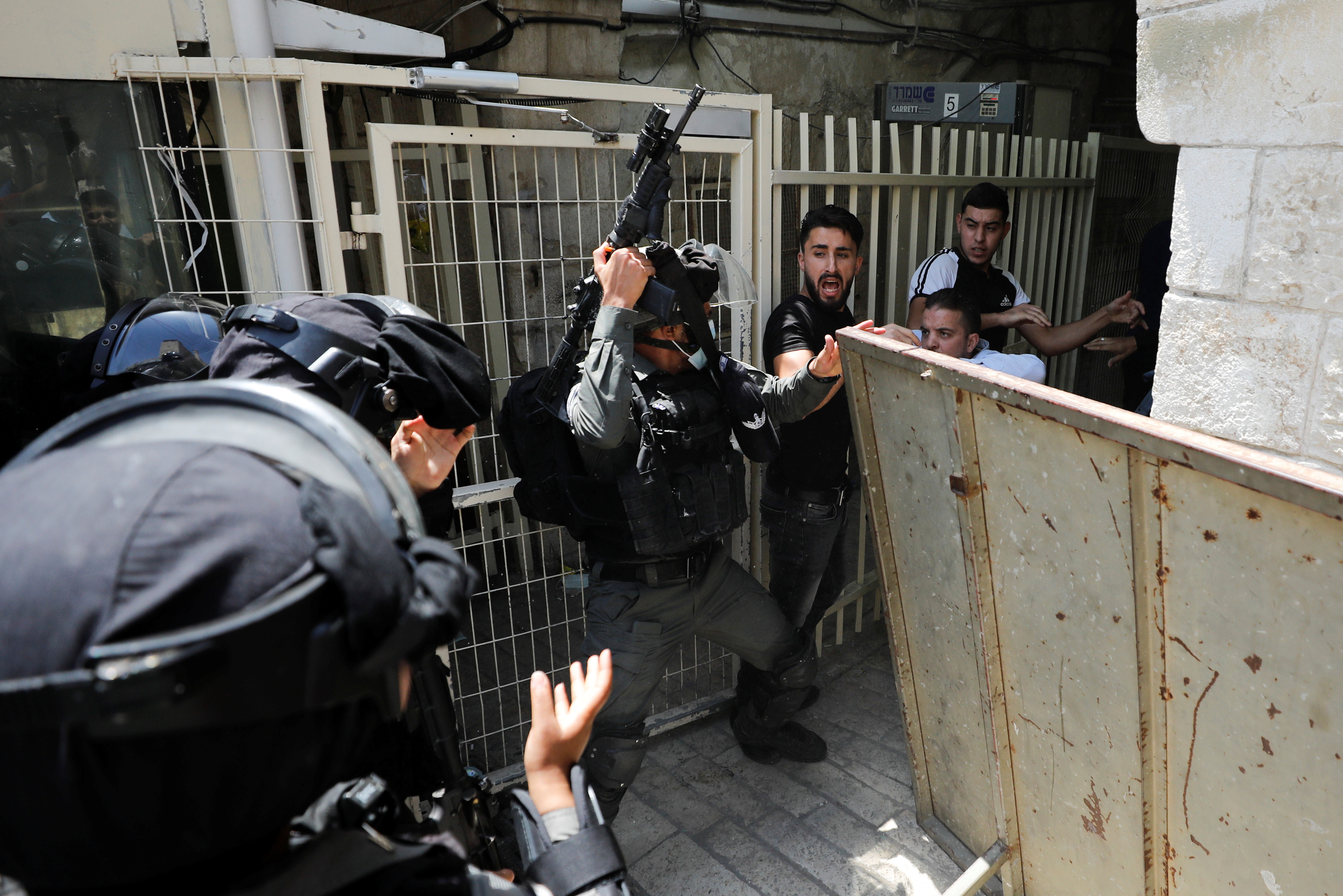 At least one person could be seen thrown onto the ground and kicked by Israeli forces. It was not immediately clear what sparked the violence.
